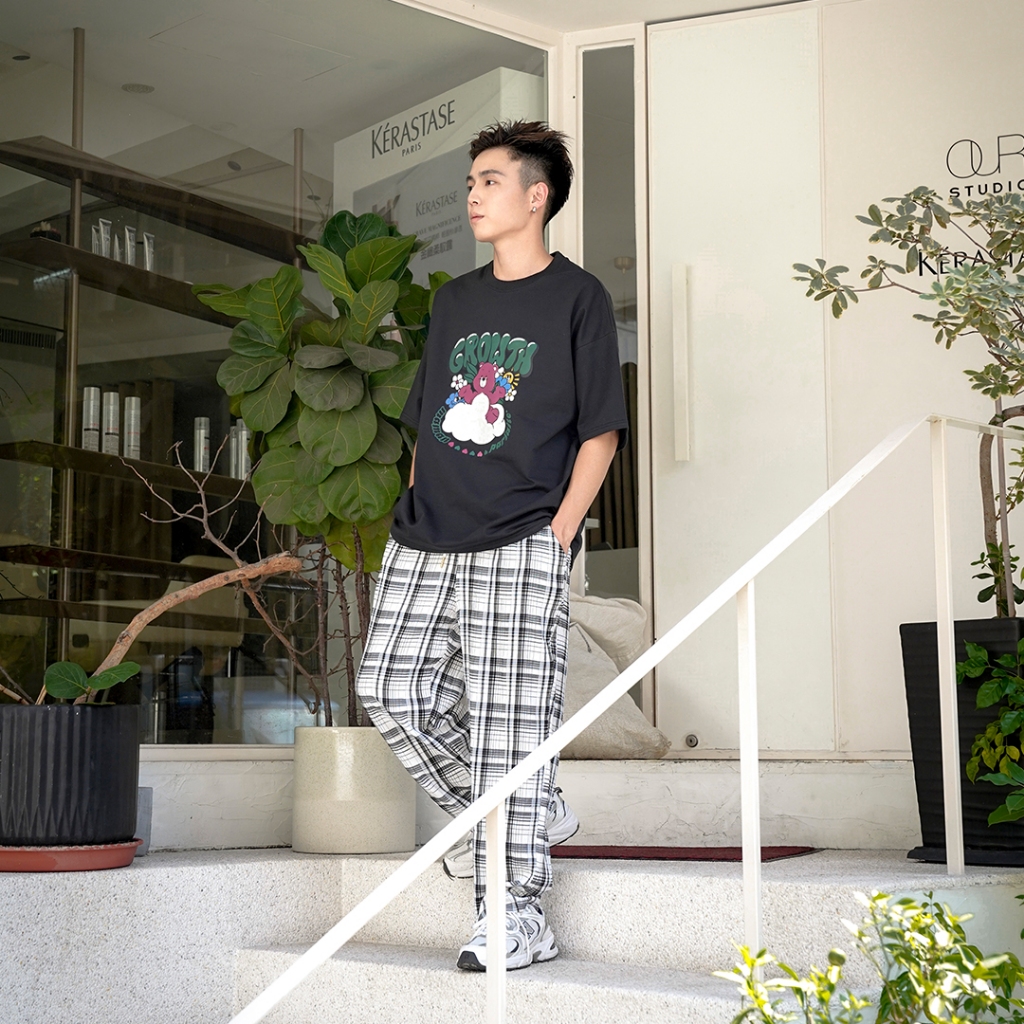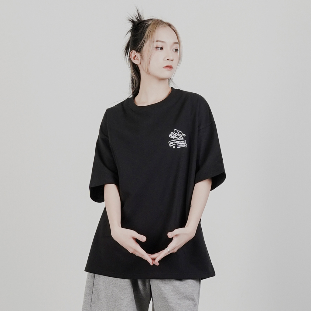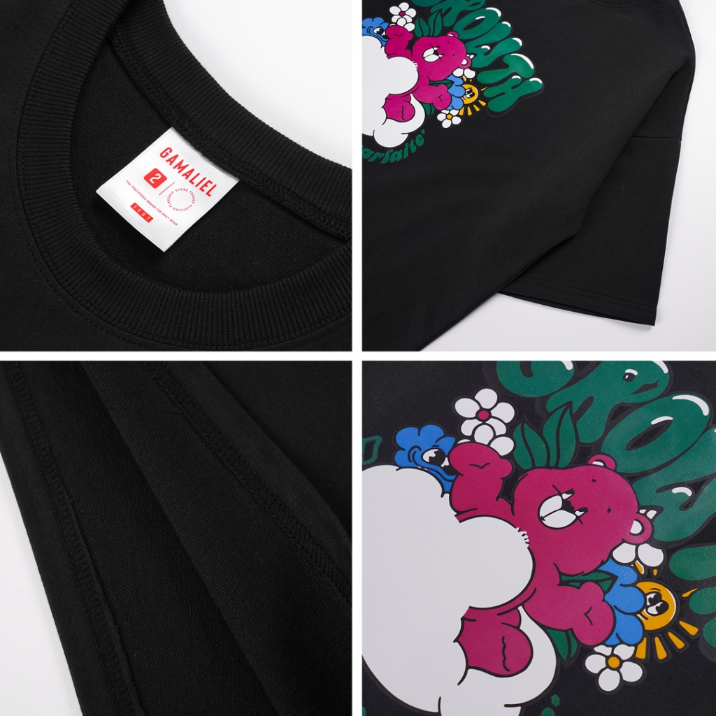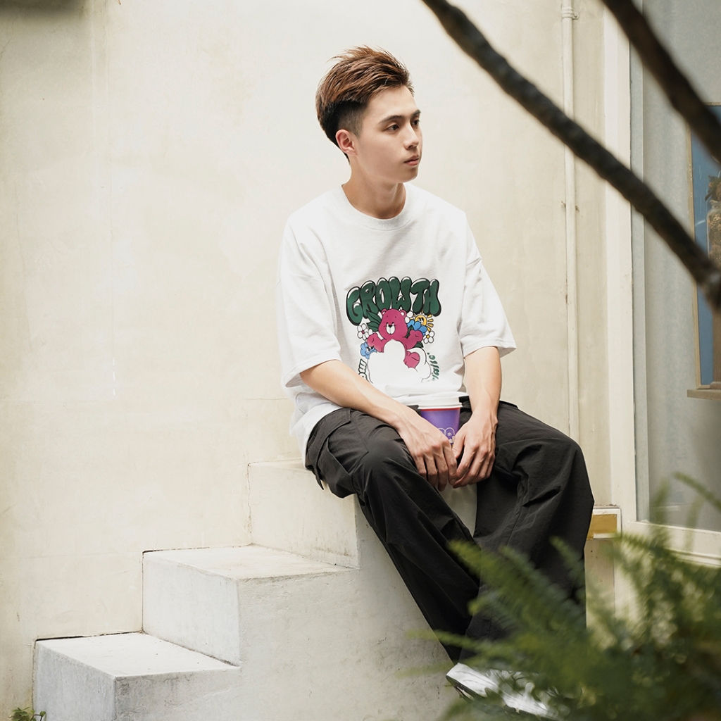 【QIAO】實拍命定款 漂浮的熊熊 細絨棉 韓系 情侶裝 落肩 五分袖 寬鬆 T恤 短袖 短T 男裝 男生衣服 可愛衣服混合白,M|混合白,L|黑色,M|黑色,L|灰色,M|灰色,LT-ShirtsQIAO 潮人服飾旗艦店