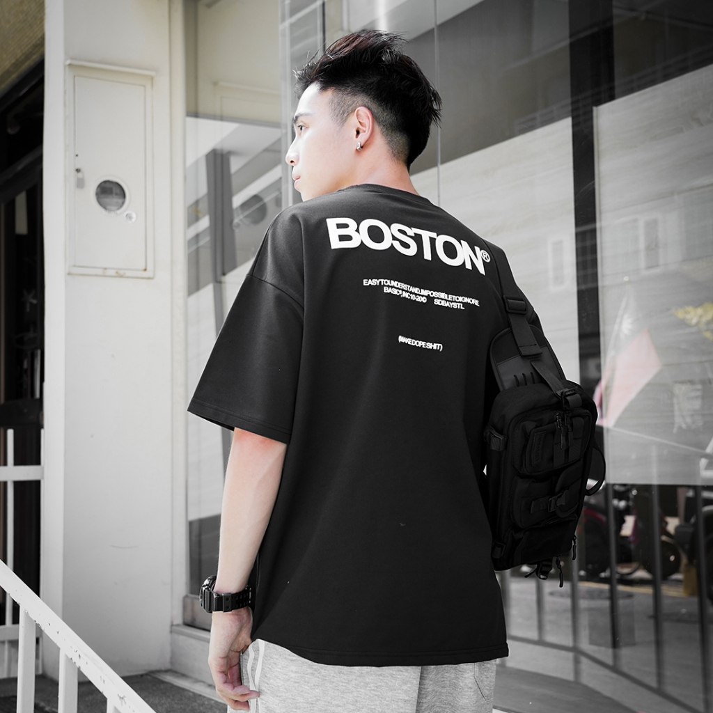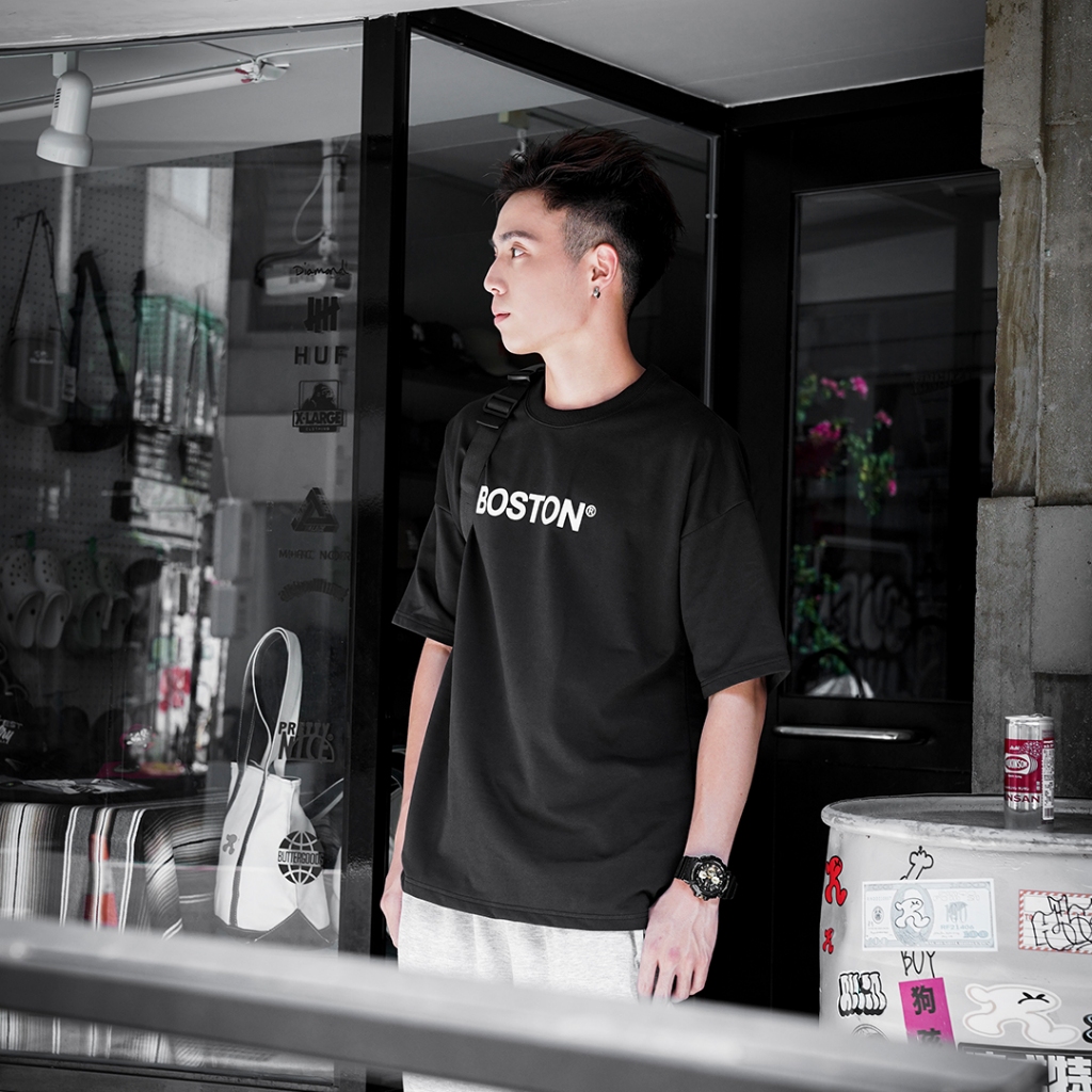 【QIAO】帥界高級感 立體BOSTON 細絨棉 韓系 情侶裝 落肩 五分袖 寬鬆 T恤 短袖 短T 男裝 男生衣服黑色,M|黑色,L|白色,M|白色,L|混合灰,M|混合灰,LT-ShirtsQIAO 潮人服飾旗艦店