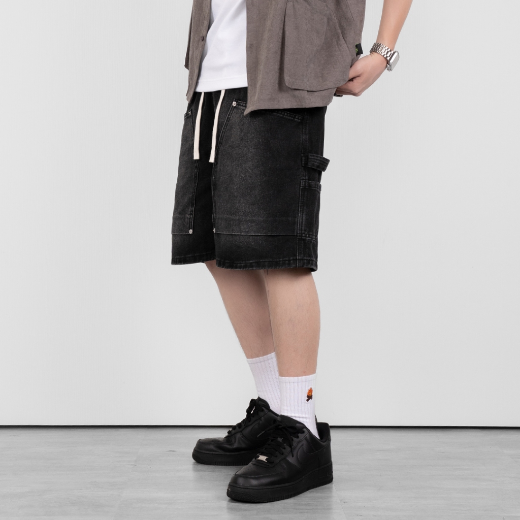 【QIAO】畫家短褲 復古水洗 牛仔工作褲 牛仔短褲 牛仔褲 工作褲 工裝 山系 短褲 Y2K 褲子