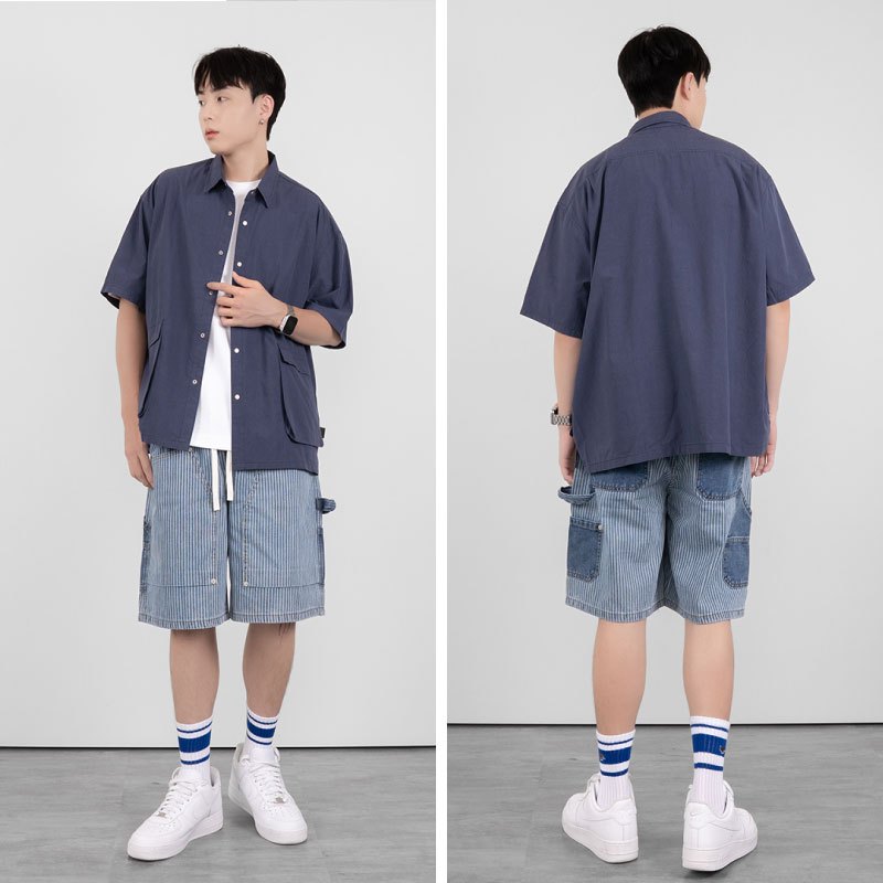 【QIAO】畫家短褲 復古水洗 牛仔工作褲 牛仔短褲 牛仔褲 工作褲 工裝 山系 短褲 Y2K 褲子藍色,M|藍色,L|藍色,XL|藍色,2XL|韓系條紋,M|韓系條紋,L|韓系條紋,XL|韓系條紋,2XL|黑色,M|黑色,L|黑色,XL|黑色,2XLQIAO 潮人服飾旗艦店