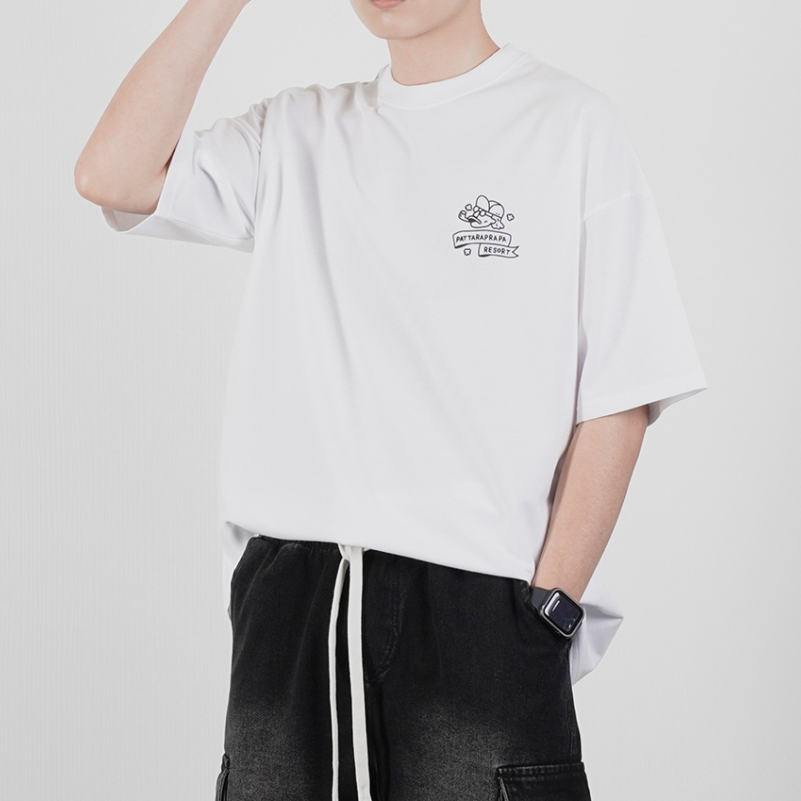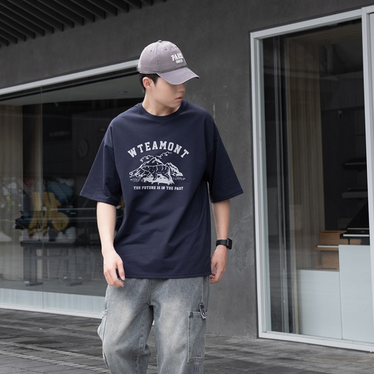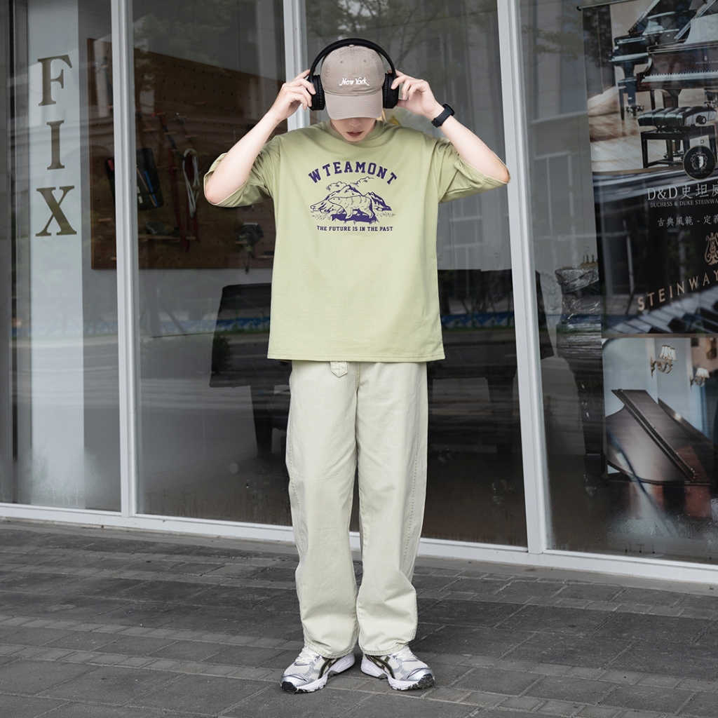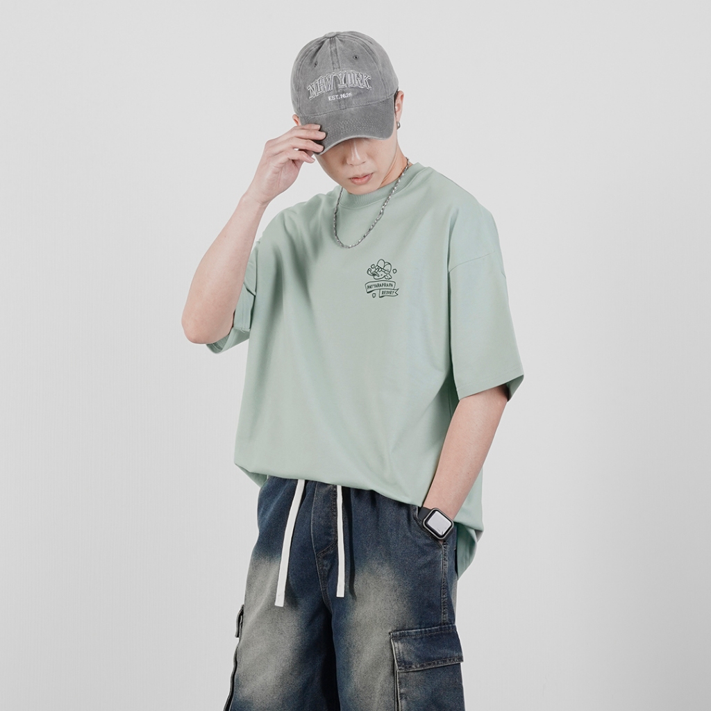 【QIAO】t-shirt 鐵腿老爹 細絨棉 插畫短T 情侶裝 落肩 五分袖 寬鬆 T恤 短袖 短T 男裝 男生衣服黑色,M|黑色,L|白色,M|白色,L|亞麻綠,M|亞麻綠,LT-ShirtsQIAO 潮人服飾旗艦店