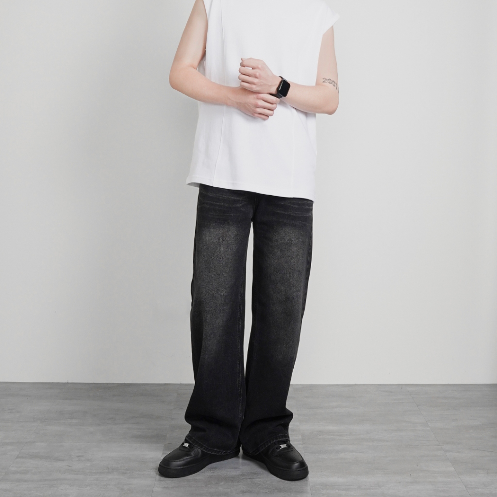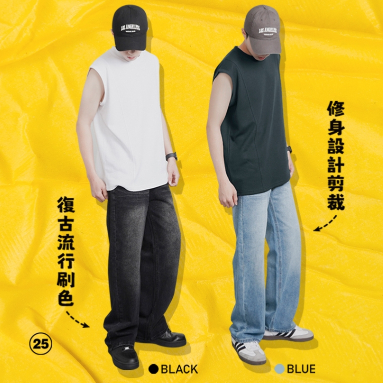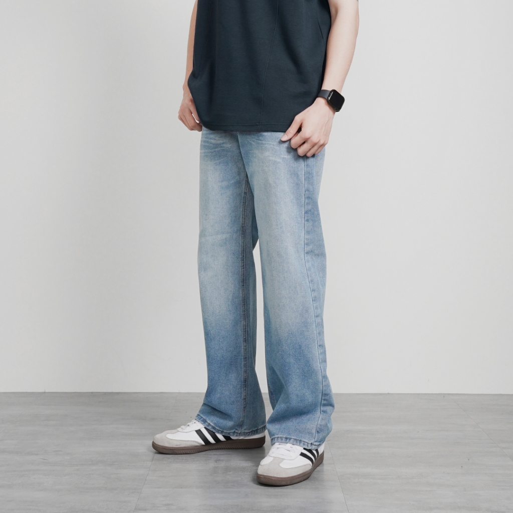 【QIAO】BARREL LEG 水洗刷色 微寬牛仔褲 牛仔工作褲 繭形 牛仔褲 水洗 長褲黑色,M|黑色,L|黑色,XL|藍色,M|藍色,L|藍色,XLQIAO 潮人服飾旗艦店