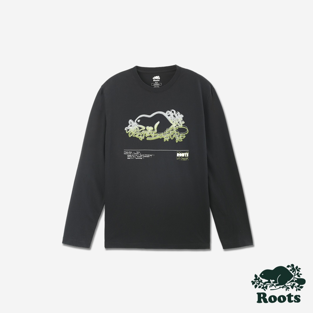 Roots男裝- NEON BEAVER 長袖上衣黑色,XS|黑色,S|黑色,M|黑色,L|黑色,XLT-ShirtsRoots 官方旗艦店