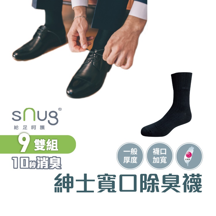 sNug【紳士寬口襪9雙組】吸汗 透氣 不悶熱 西裝 上班族 皮鞋穿搭 中筒襪 除臭襪 10秒除臭 永久有效 台灣製黑色,25-27sNug給足呵護-科技健康襪/台灣製/官方直營