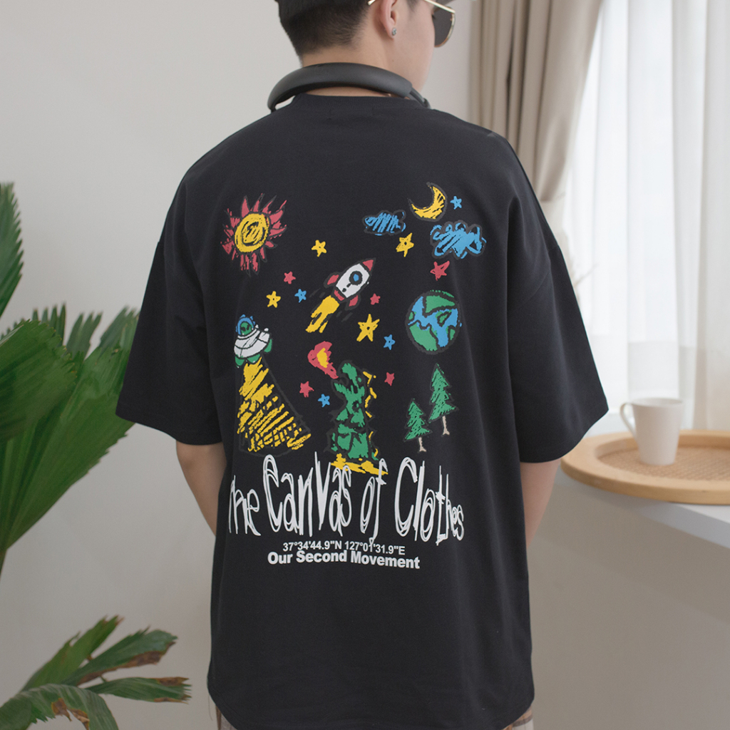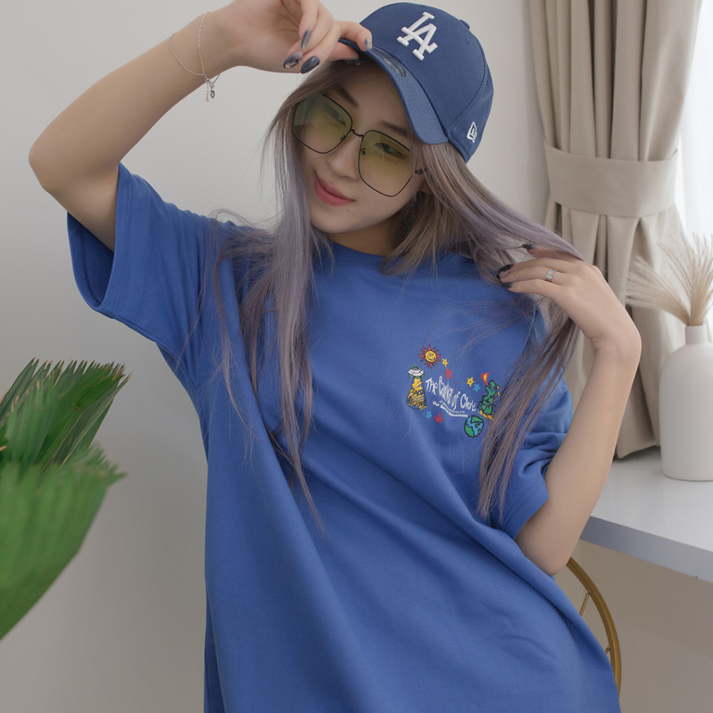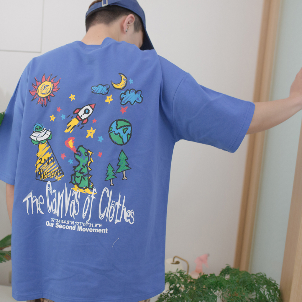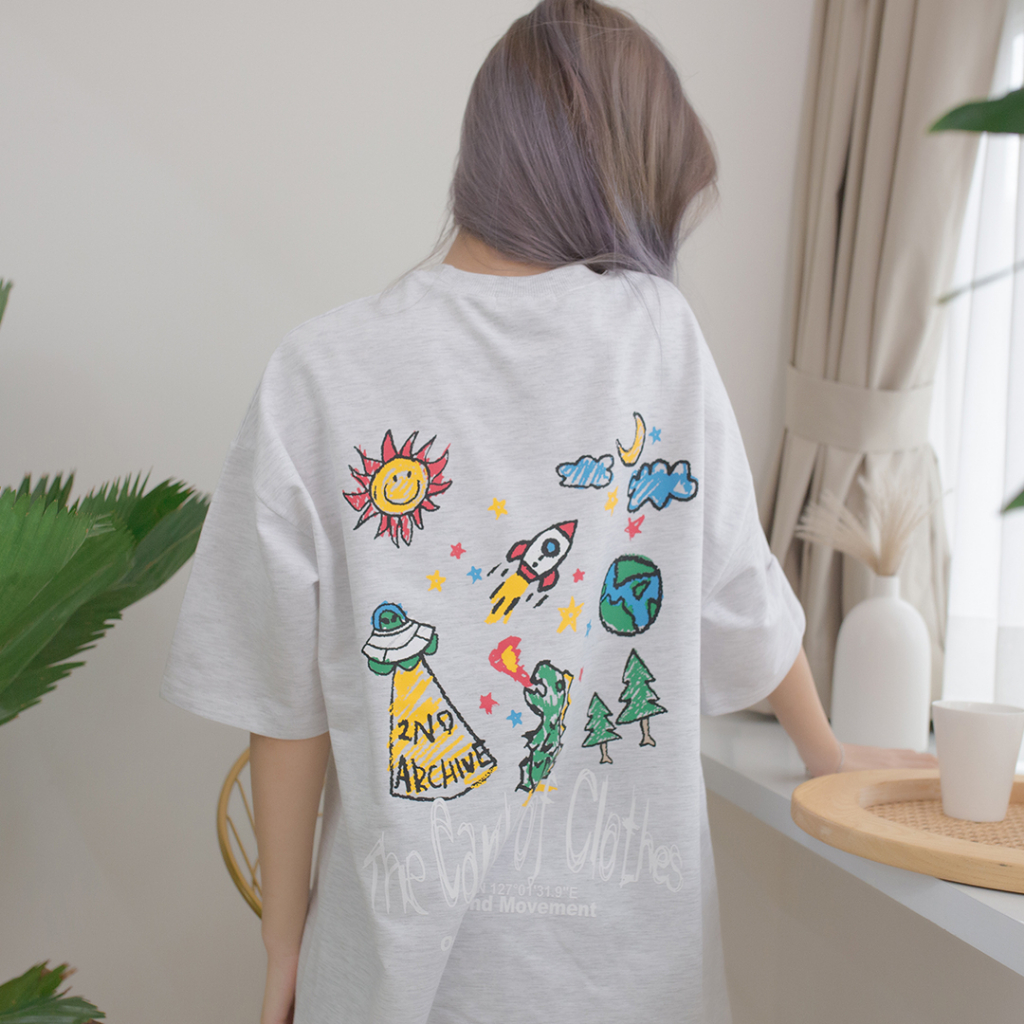 QIAO 韓國新貨 史詩 滅絕 宇宙大戰 太空 飛碟 恐龍 細絨棉 落肩 寬鬆 情侶 穿搭 T恤 圖T 短T 長版T 帥寶藍色,L|混合白,M|混合白,L|純黑色,M|純黑色,L|寶藍色,MT-ShirtsQIAO 潮人服飾旗艦店