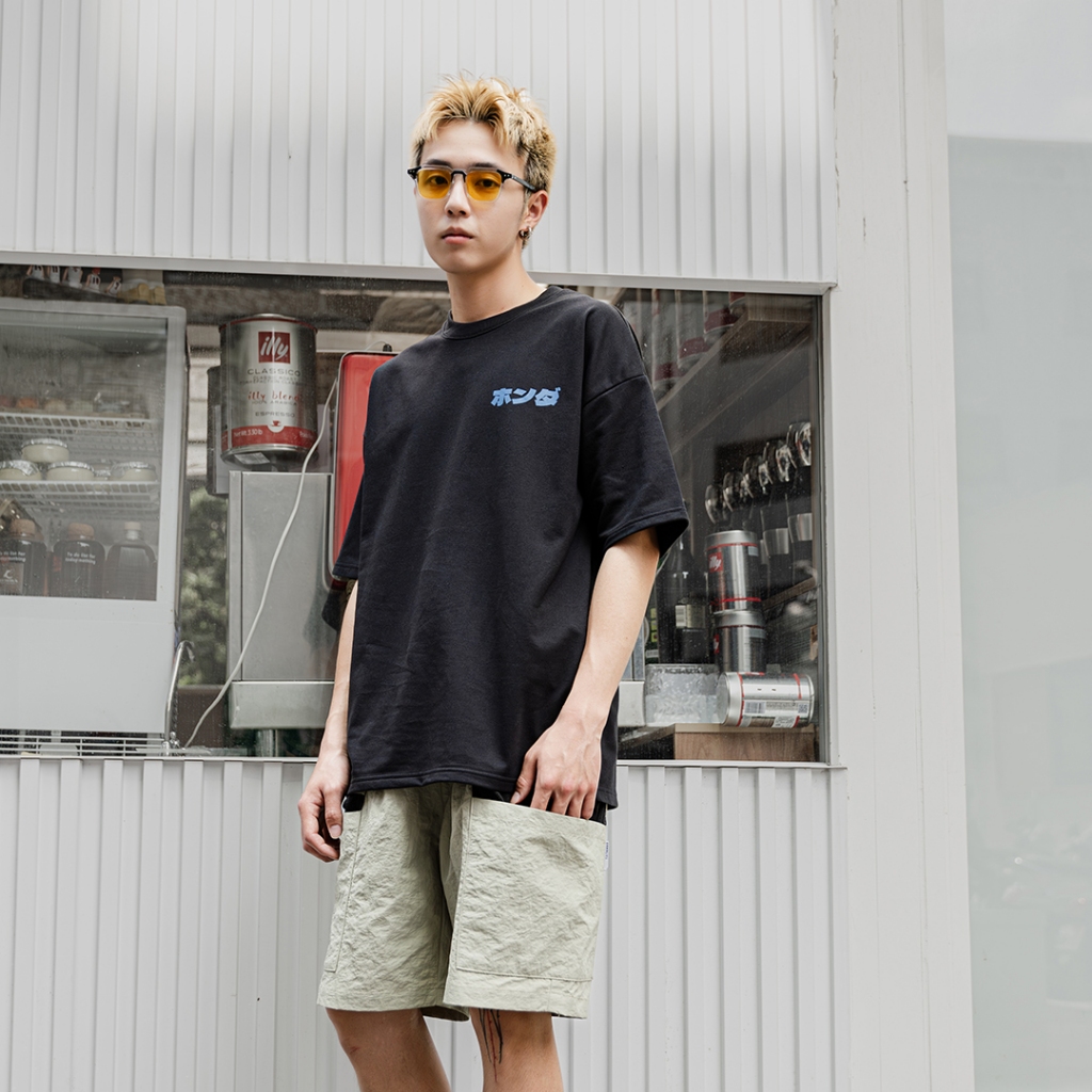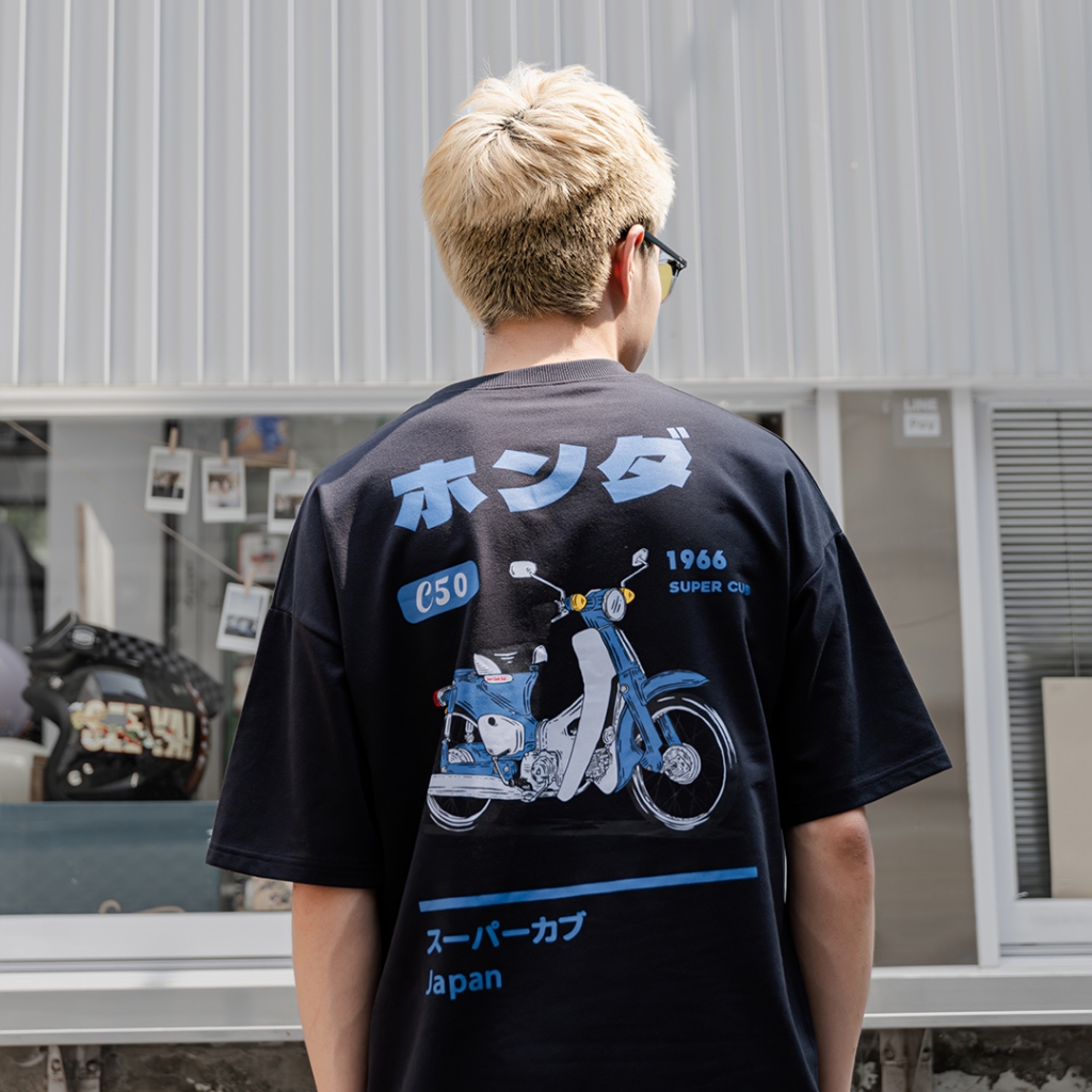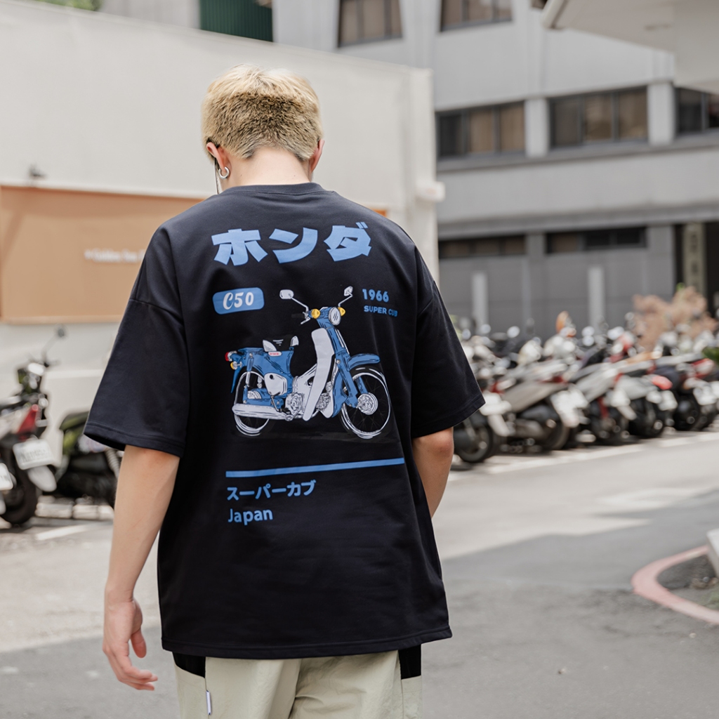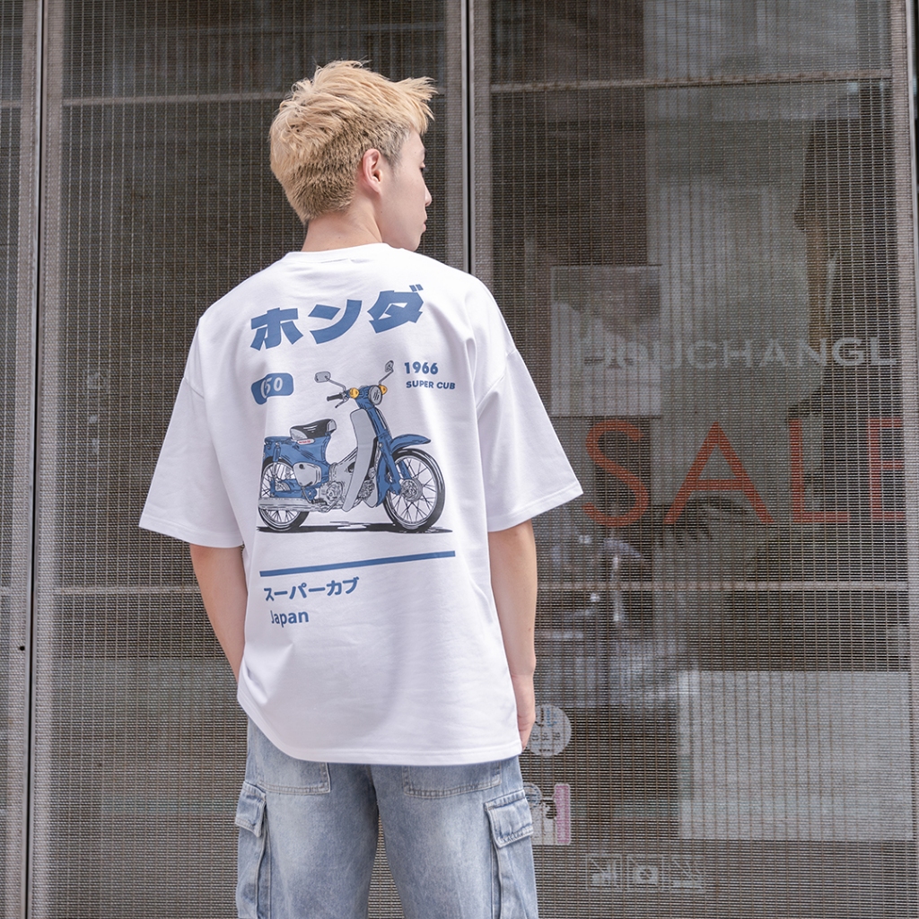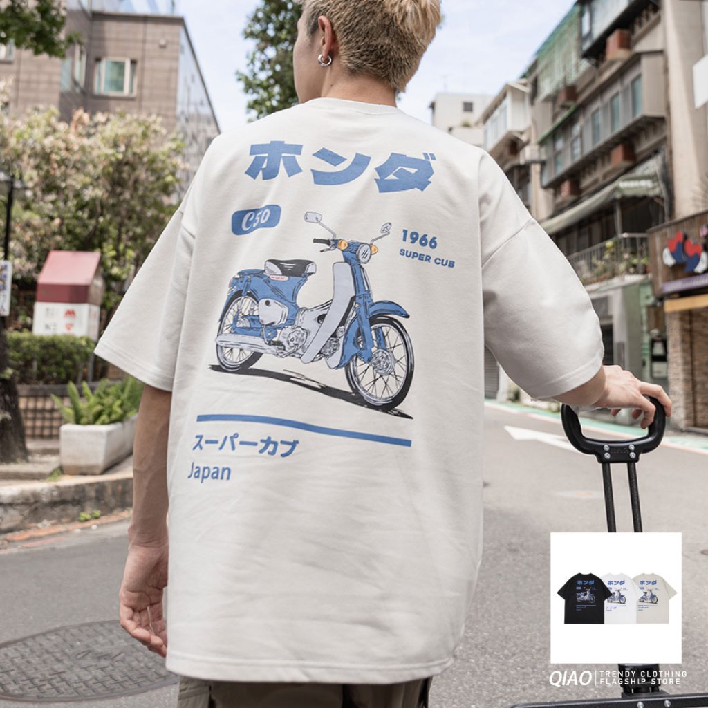 【QIAO】韓國哈日版 日本老機車 細絨棉 落肩 男友衣 上衣 短T 短袖 寬鬆 日系 男生短袖灰杏色,L|白色,M|白色,L|黑色,M|黑色,L|灰杏色,MT-ShirtsQIAO 潮人服飾旗艦店