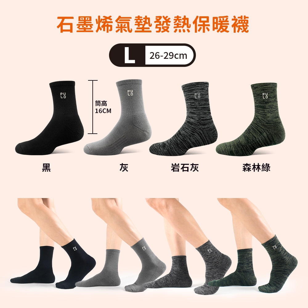 <滿3雙單雙179元>PULO-石墨烯氣墊發熱保暖襪(L)厚底氣墊 日本韓國玩雪薦 熱循環 禦寒神襪★石墨烯襪 發熱保暖岩石灰-L|霧霾藍-L|灰-L|黑-L|森林綠-LPULO布蘿襪館官方直營旗艦店|穿立淨除臭襪