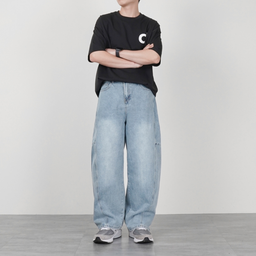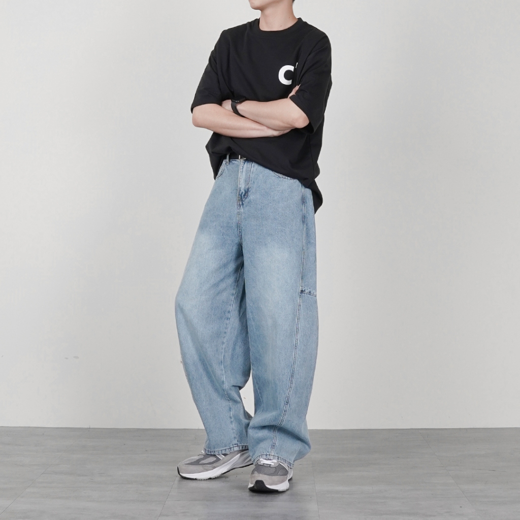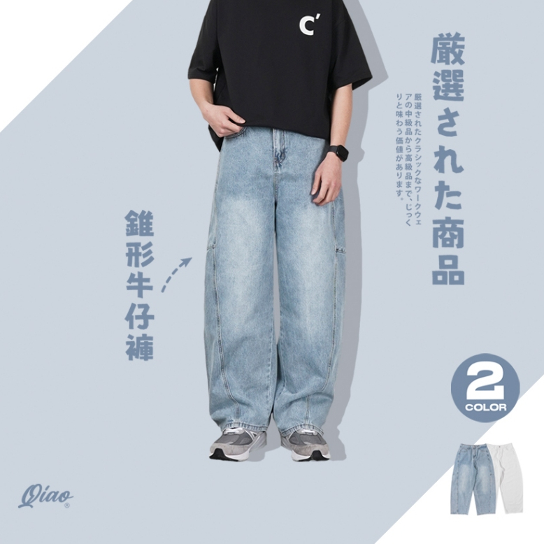 【QIAO】錐形闊腿 牛仔寬褲 彎刀褲 白色牛仔褲 水洗刷色 復古 錐形褲 長褲 褲子白色,M|白色,L|白色,XL|白色,XXL|藍色,M|藍色,L|藍色,XL|藍色,XXLQIAO 潮人服飾旗艦店