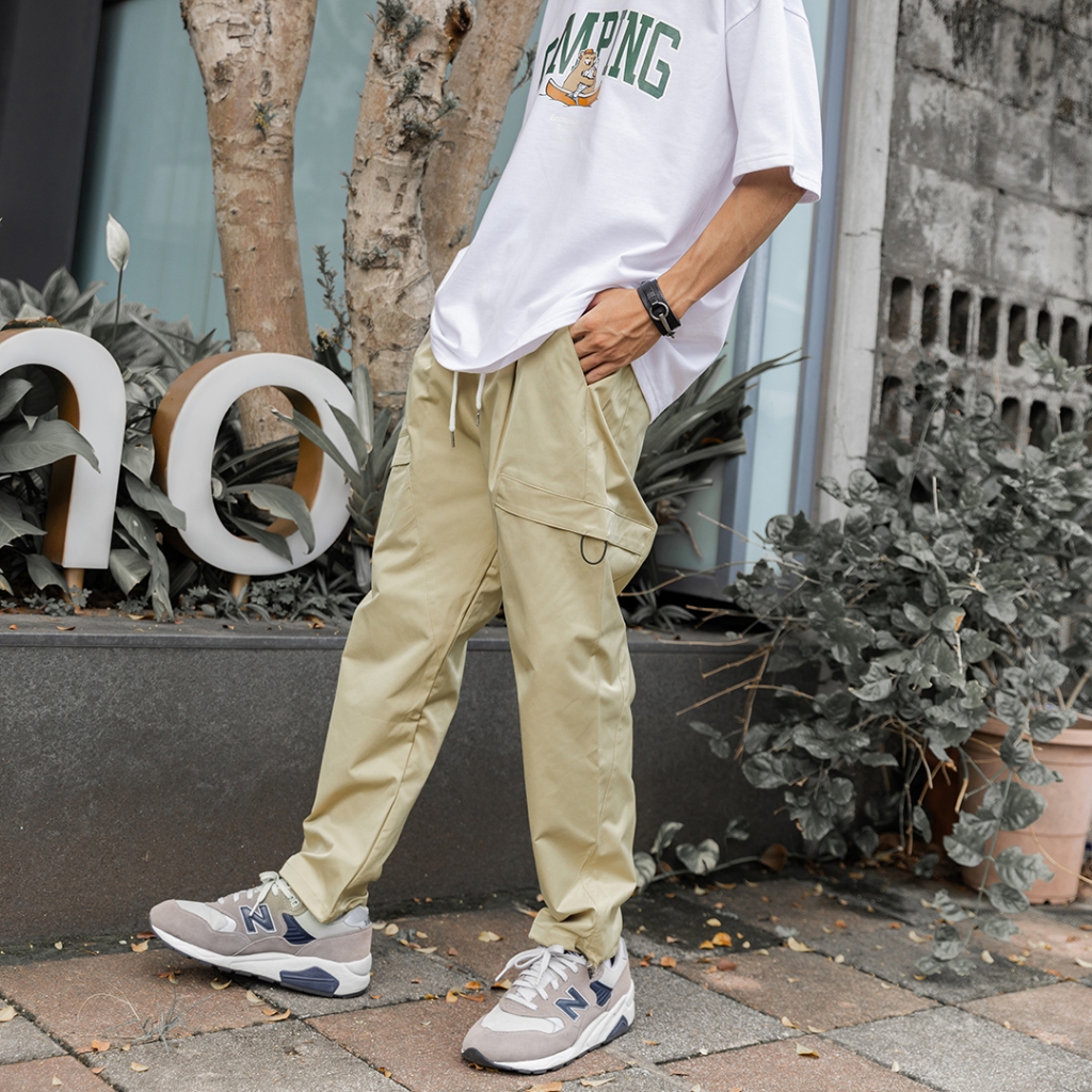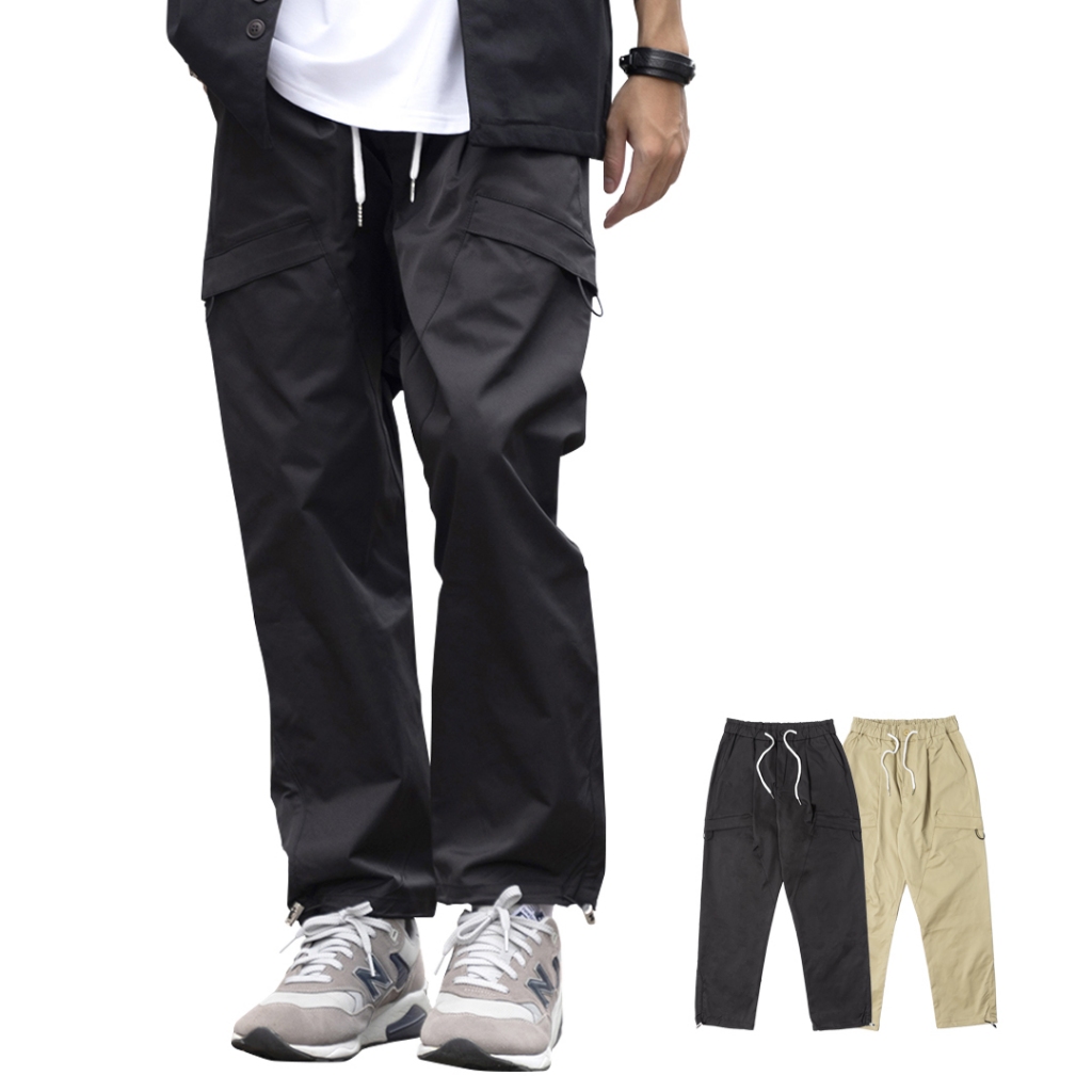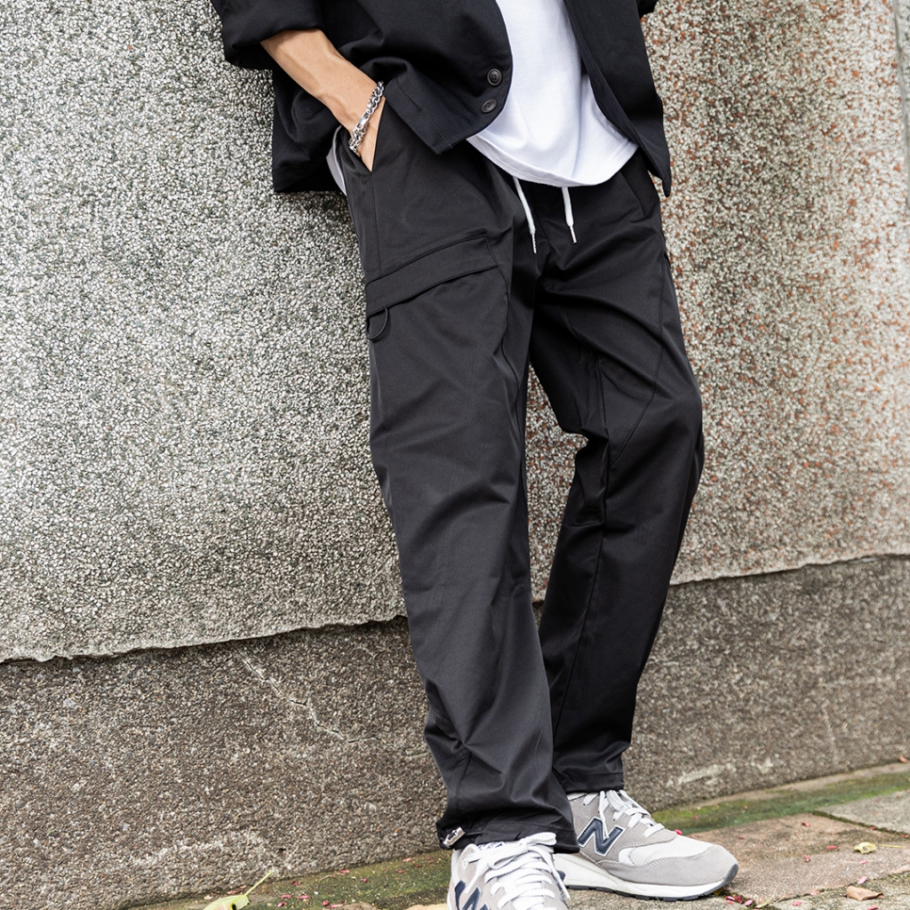 【QIAO】韓國新貨 斜口袋拼接工裝褲 斜紋尼龍 抽繩 直筒 修身 休閒長褲 工裝長褲 工作褲 男生長褲 男長褲 長褲黑色,S|黑色,M|黑色,L|黑色,XL|黑色,XXL|卡其色,S|卡其色,M|卡其色,L|卡其色,XL|卡其色,XXLCargoQIAO 潮人服飾旗艦店