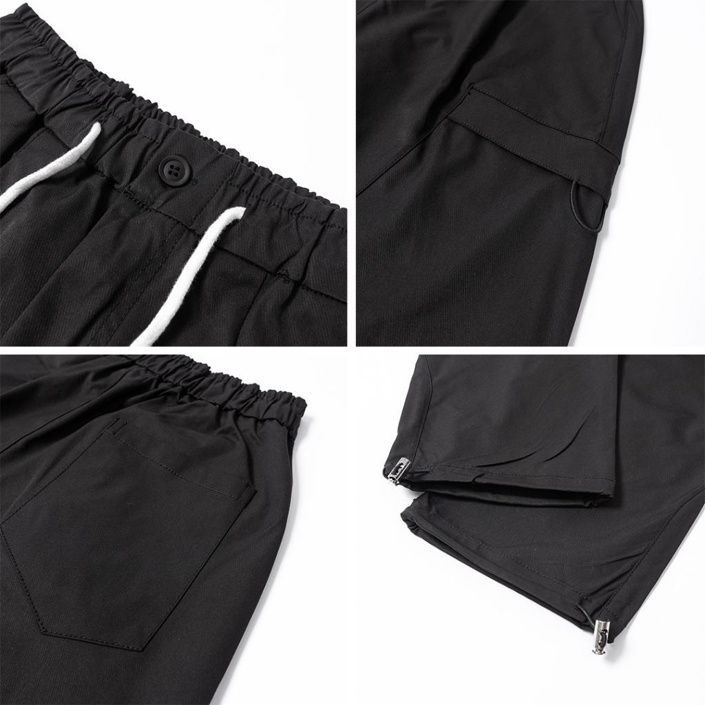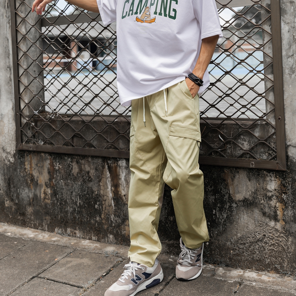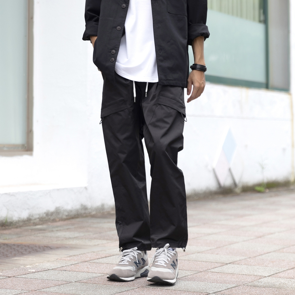 【QIAO】韓國新貨 斜口袋拼接工裝褲 斜紋尼龍 抽繩 直筒 修身 休閒長褲 工裝長褲 工作褲 男生長褲 男長褲 長褲黑色,S|黑色,M|黑色,L|黑色,XL|黑色,XXL|卡其色,S|卡其色,M|卡其色,L|卡其色,XL|卡其色,XXLCargoQIAO 潮人服飾旗艦店