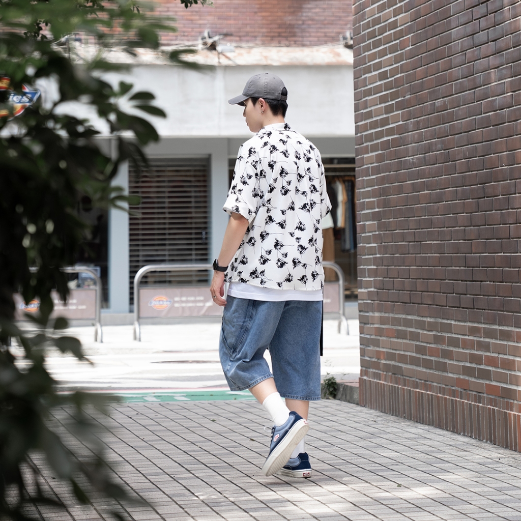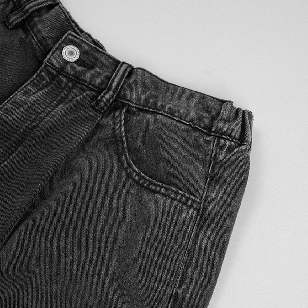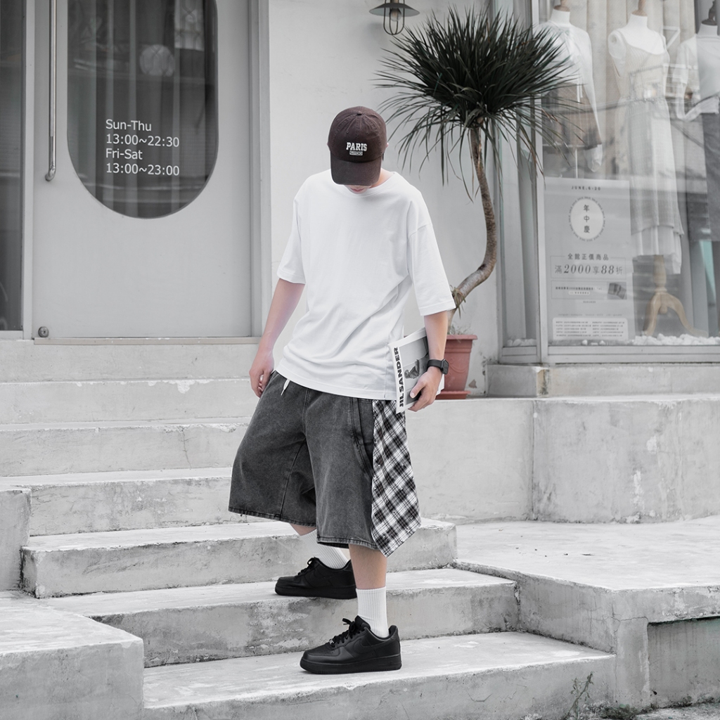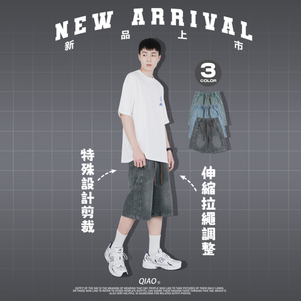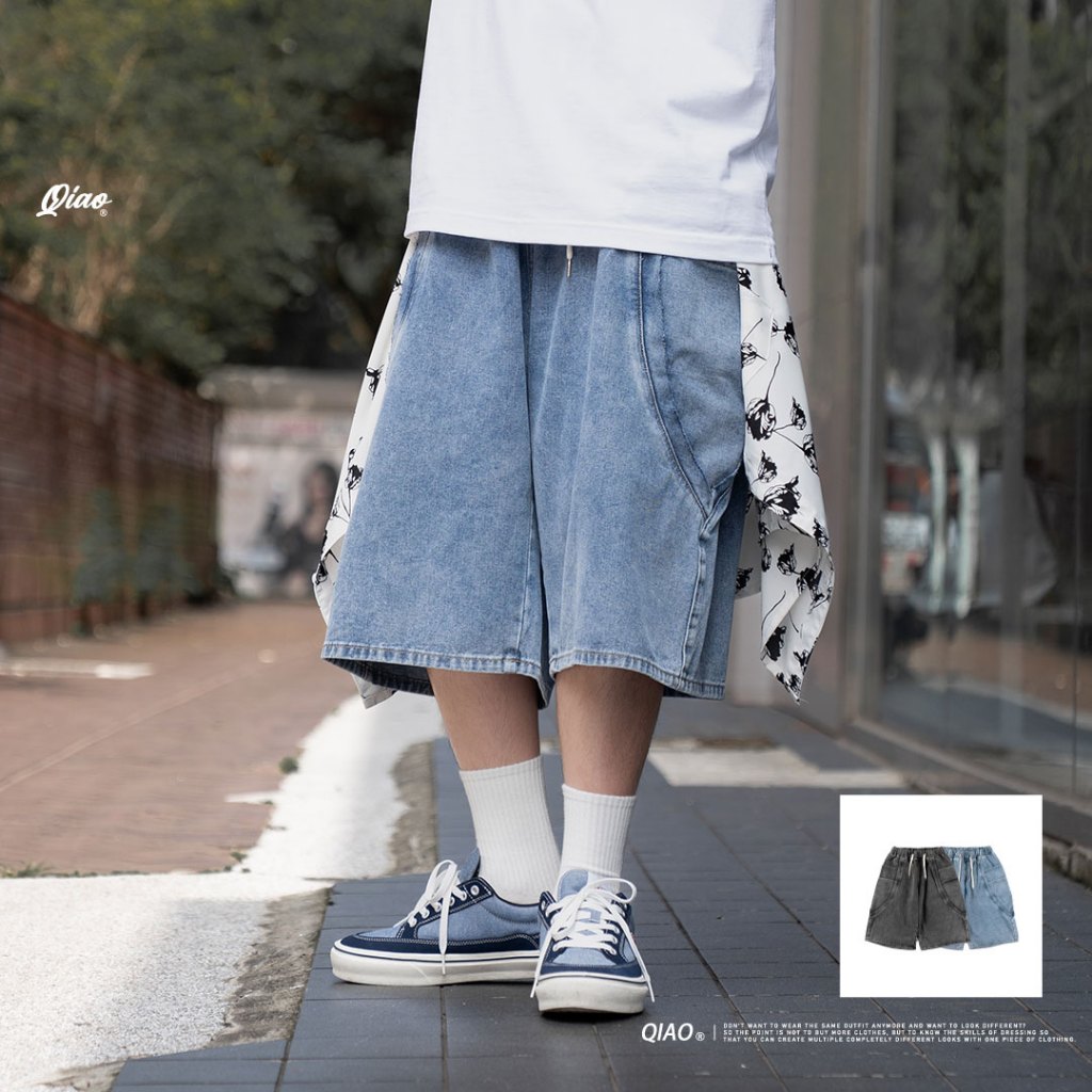 QIAO 視覺剪裁|七分牛仔褲 七分褲 牛仔褲 寬褲 復古短褲 牛仔短褲 褲子 短褲黑色|藍色QIAO 潮人服飾旗艦店