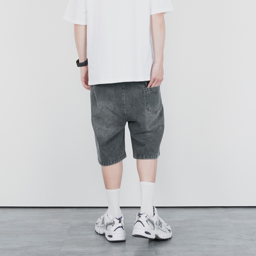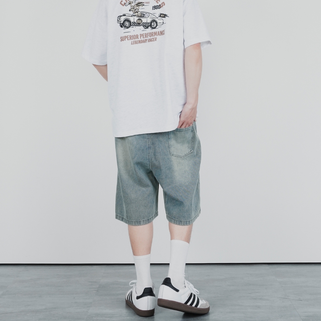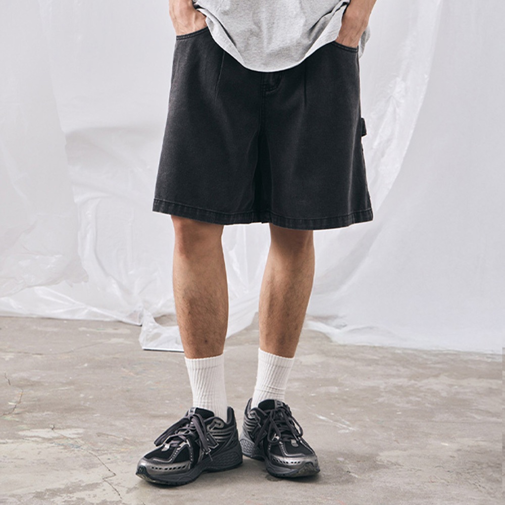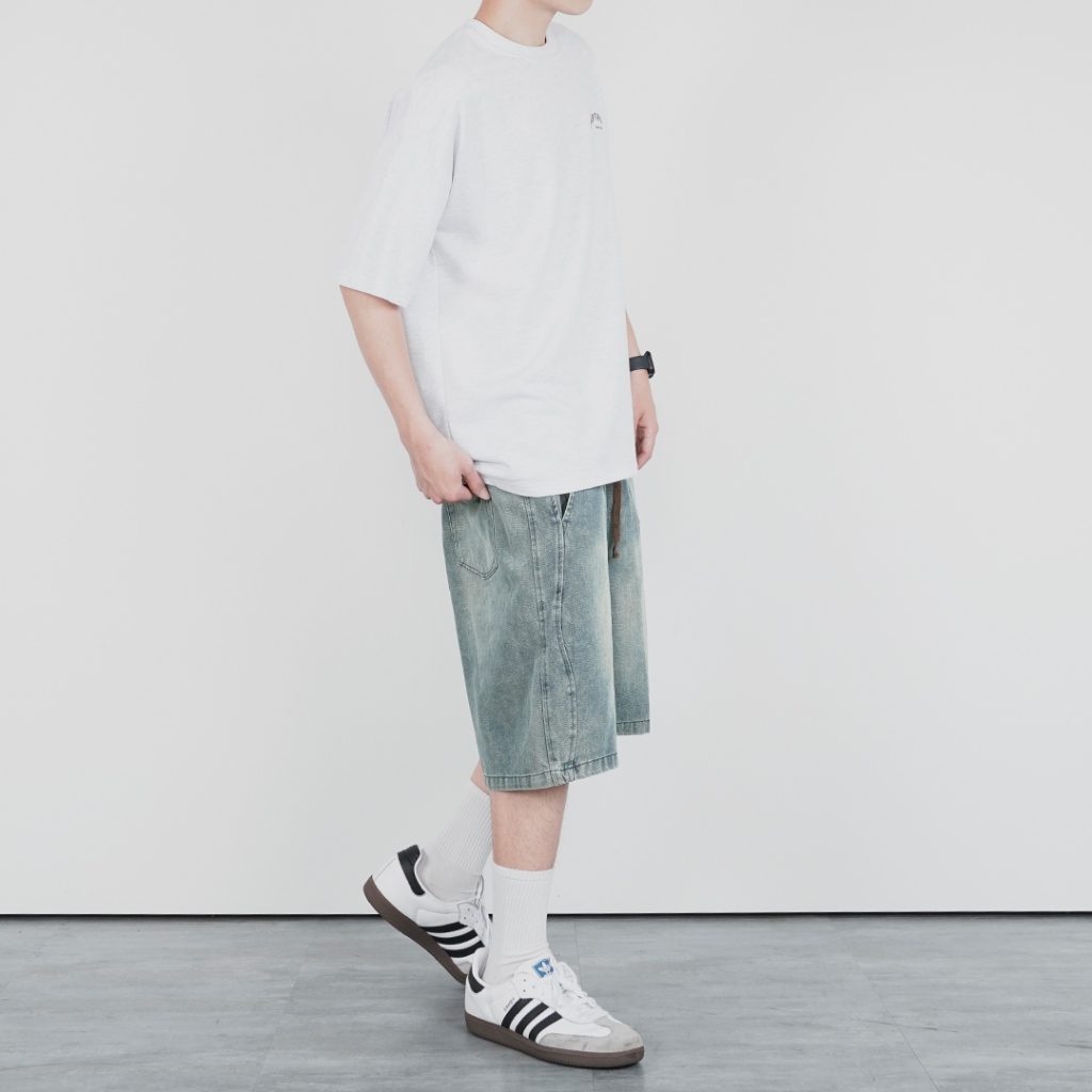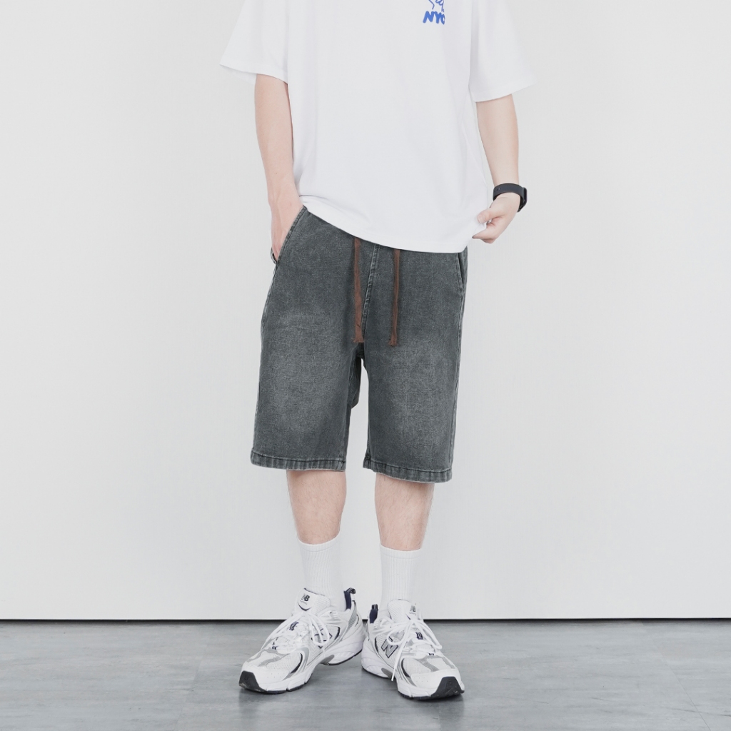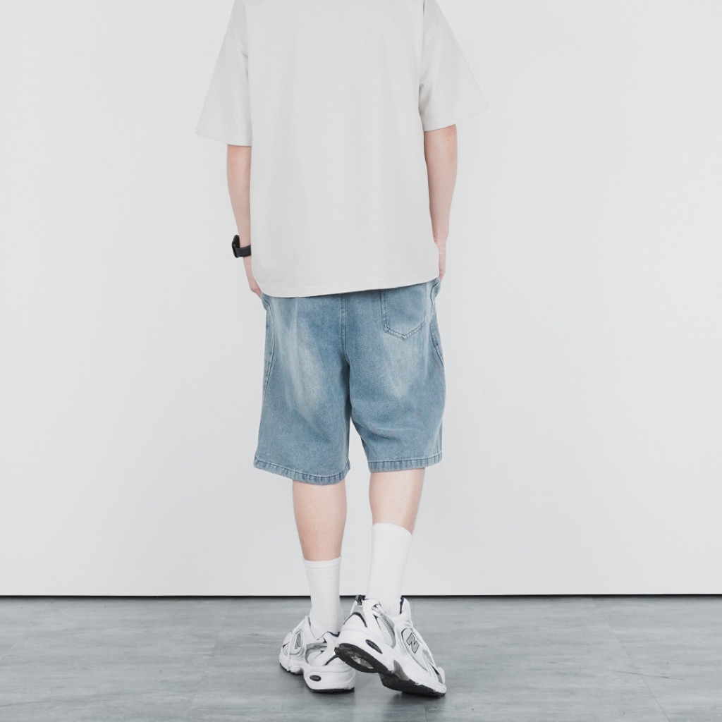 QUEENSHOP_ S 男裝 打褶設計寬版牛仔短褲 S/M/L/XL 現+預 【04120111】S|M|L|XLQUEENSHOP