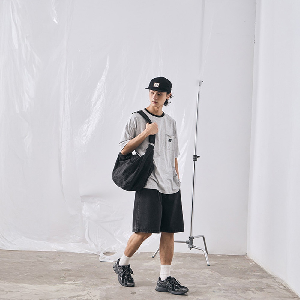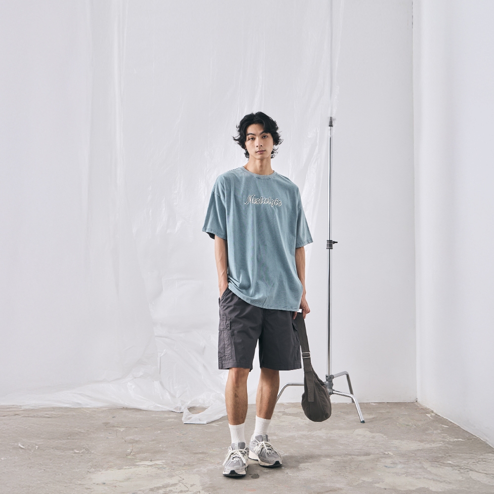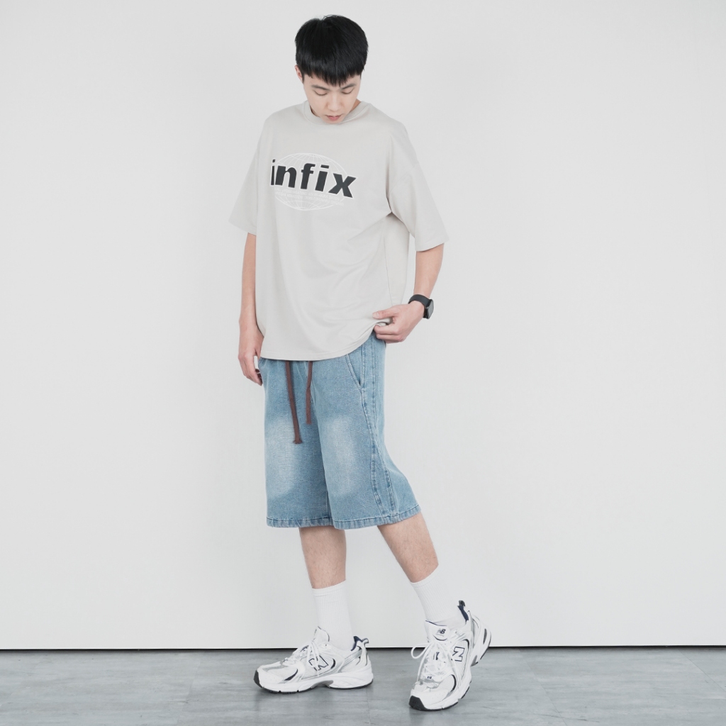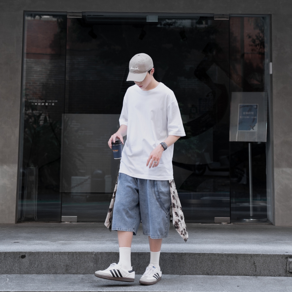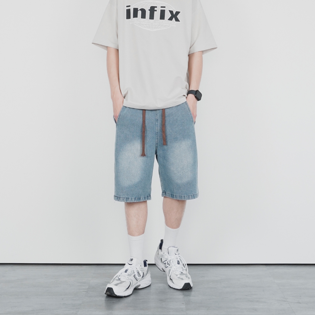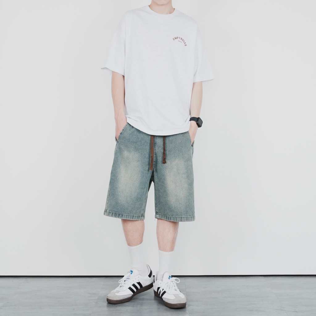 QUEENSHOP_ S 男裝 打褶設計寬版牛仔短褲 S/M/L/XL 現+預 【04120111】S|M|L|XLQUEENSHOP
