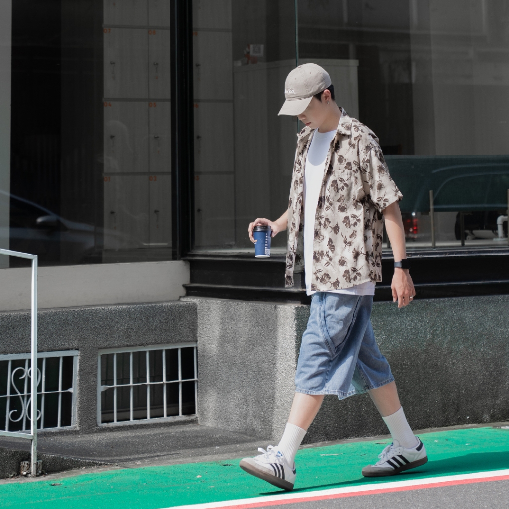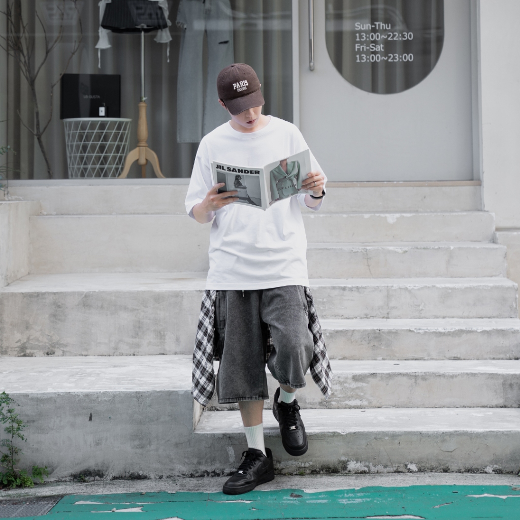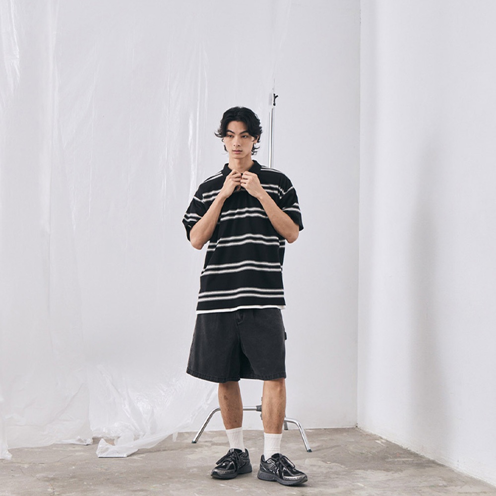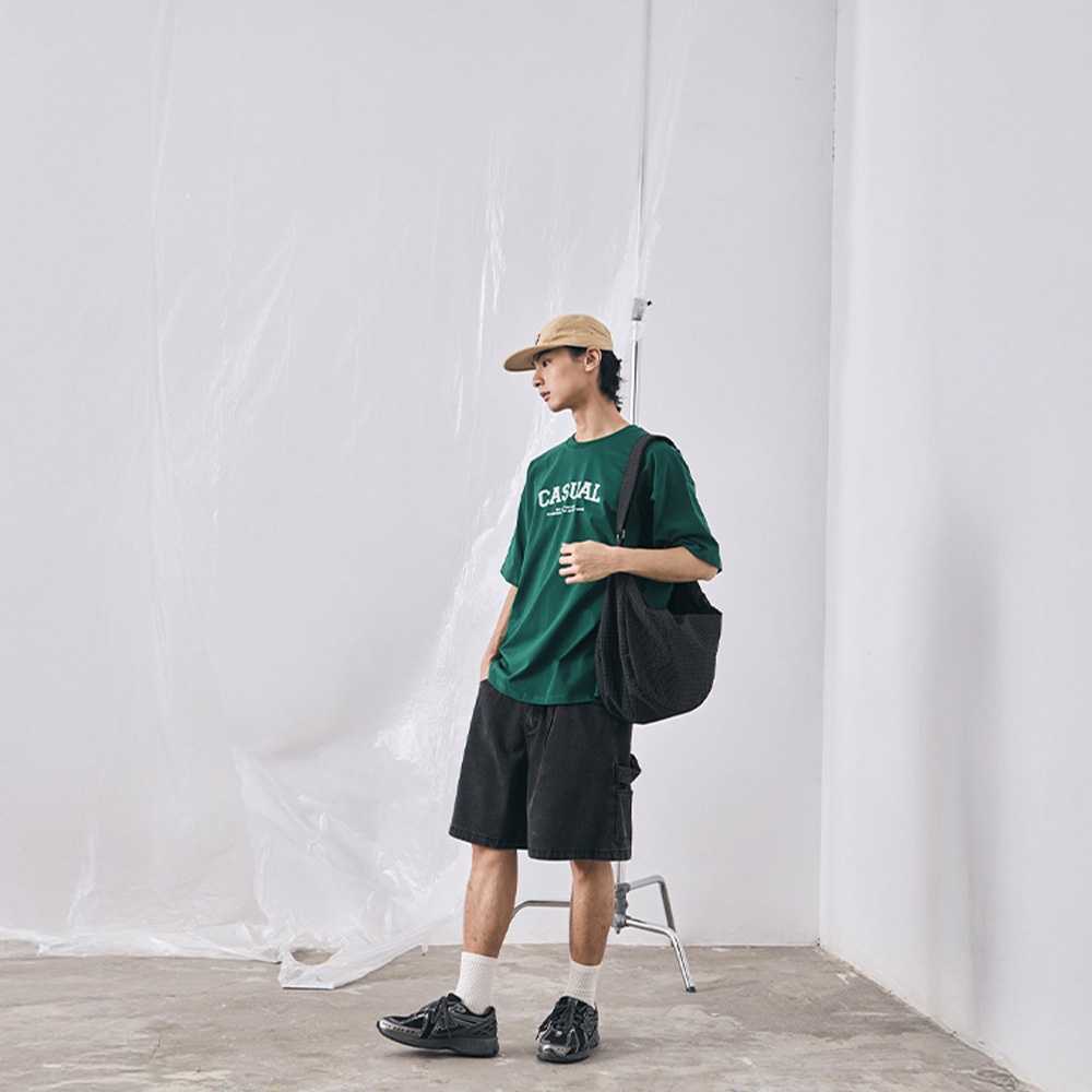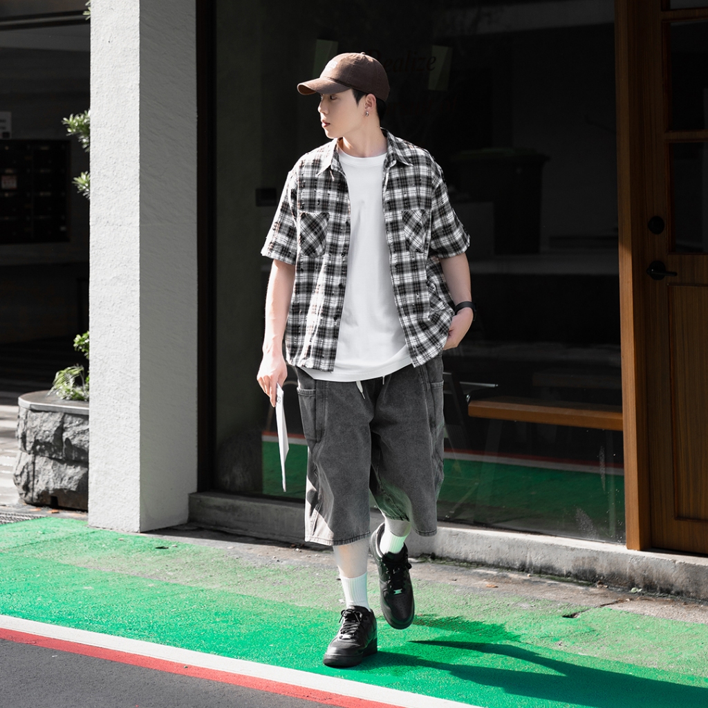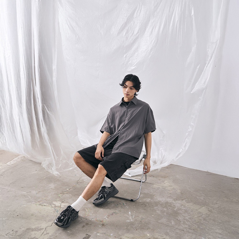 QUEENSHOP_ S 男裝 打褶設計寬版牛仔短褲 S/M/L/XL 現+預 【04120111】S|M|L|XLQUEENSHOP