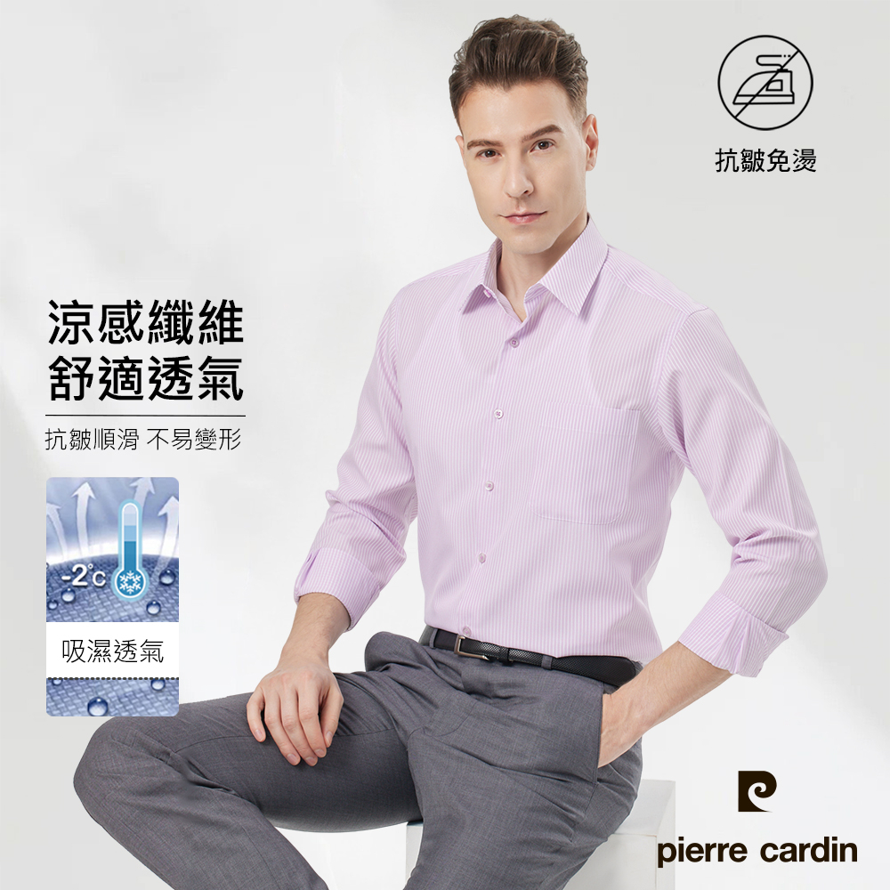 【pierre cardin 皮爾卡登】男襯衫 涼感機能抗皺順滑舒適條紋長袖襯衫_白色粉條(62854-71)白色粉條,37|白色粉條,38|白色粉條,40|白色粉條,41|白色粉條,43|白色粉條,39|白色粉條,42Shirtspierre cardin 皮爾卡登|襯衫官方旗艦館