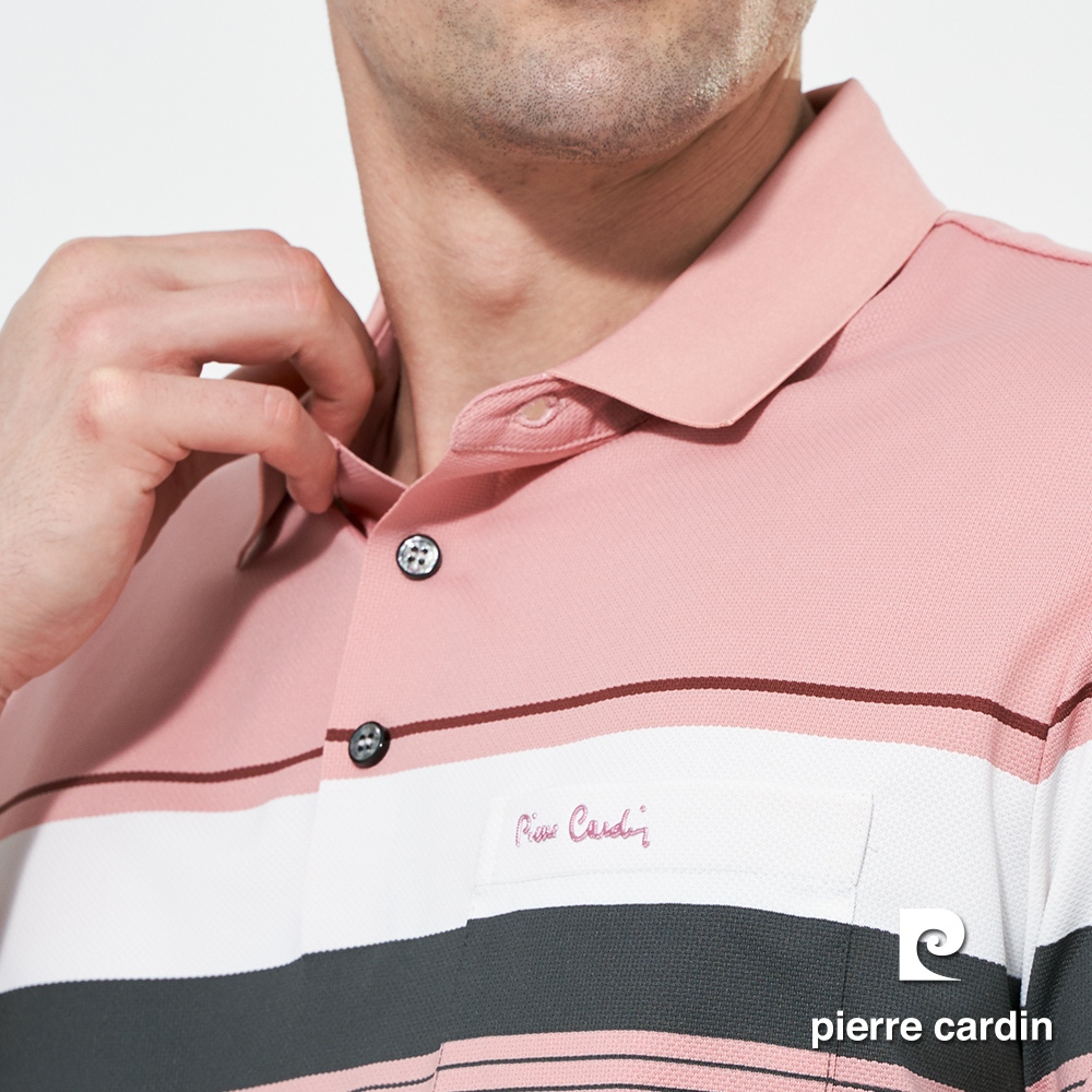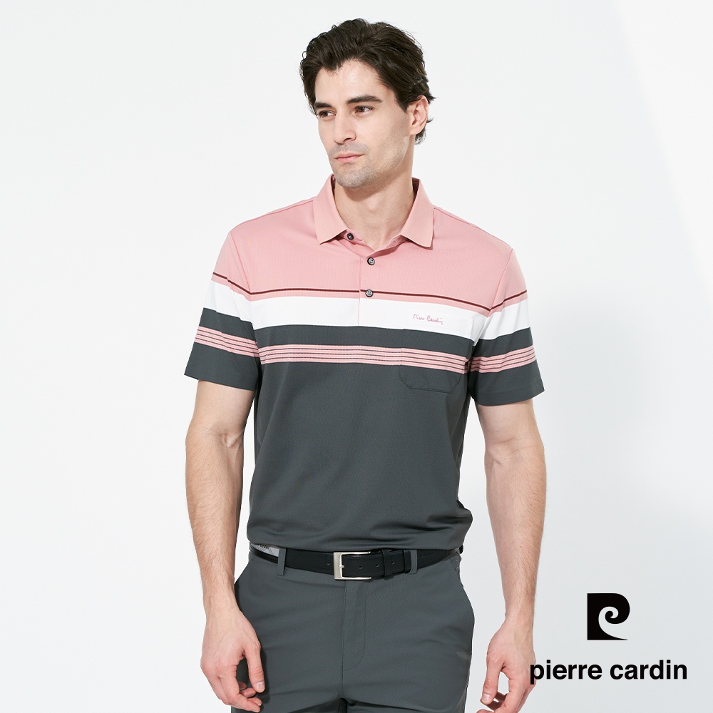 【pierre cardin 皮爾卡登】男款 抗菌定位橫條短袖polo衫-粉紅色 (5257268-72)M|L|XL|3L|4LPolo ShirtsPierre Cardin 皮爾卡登 【官方】休閒服飾