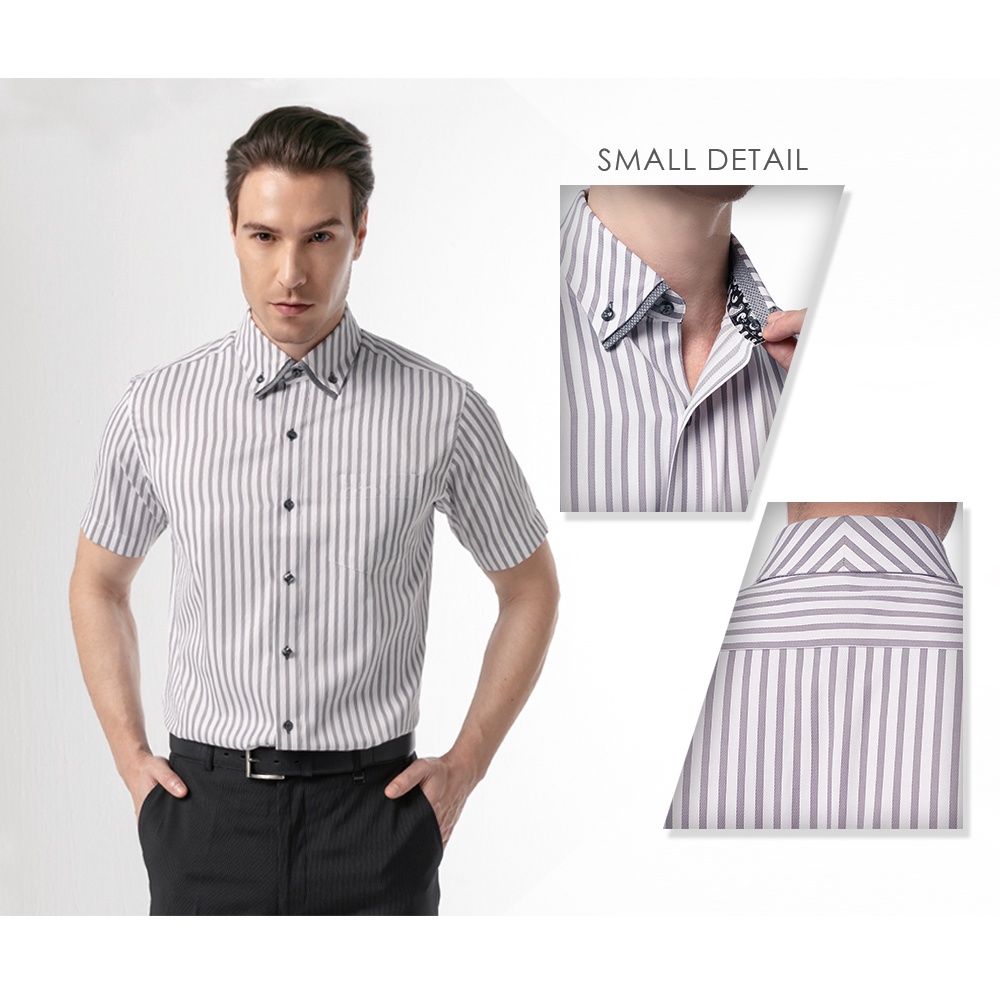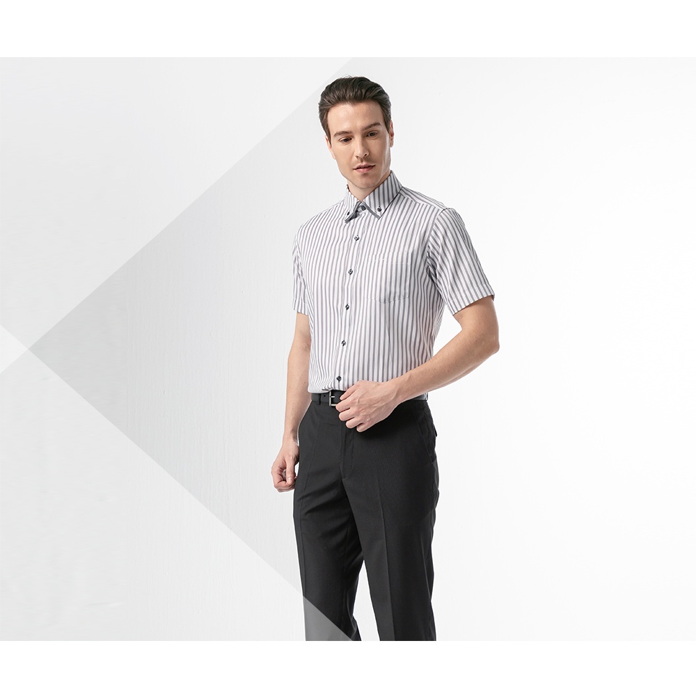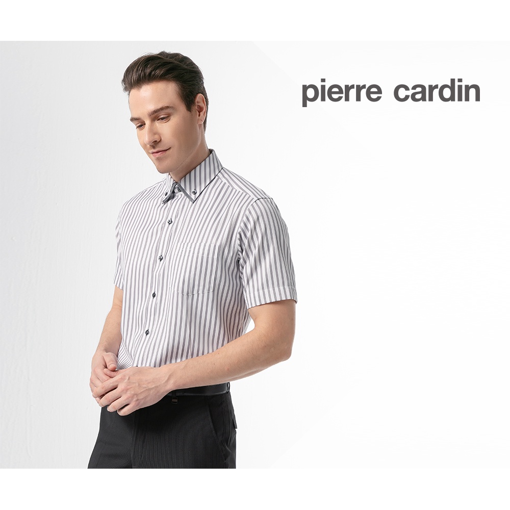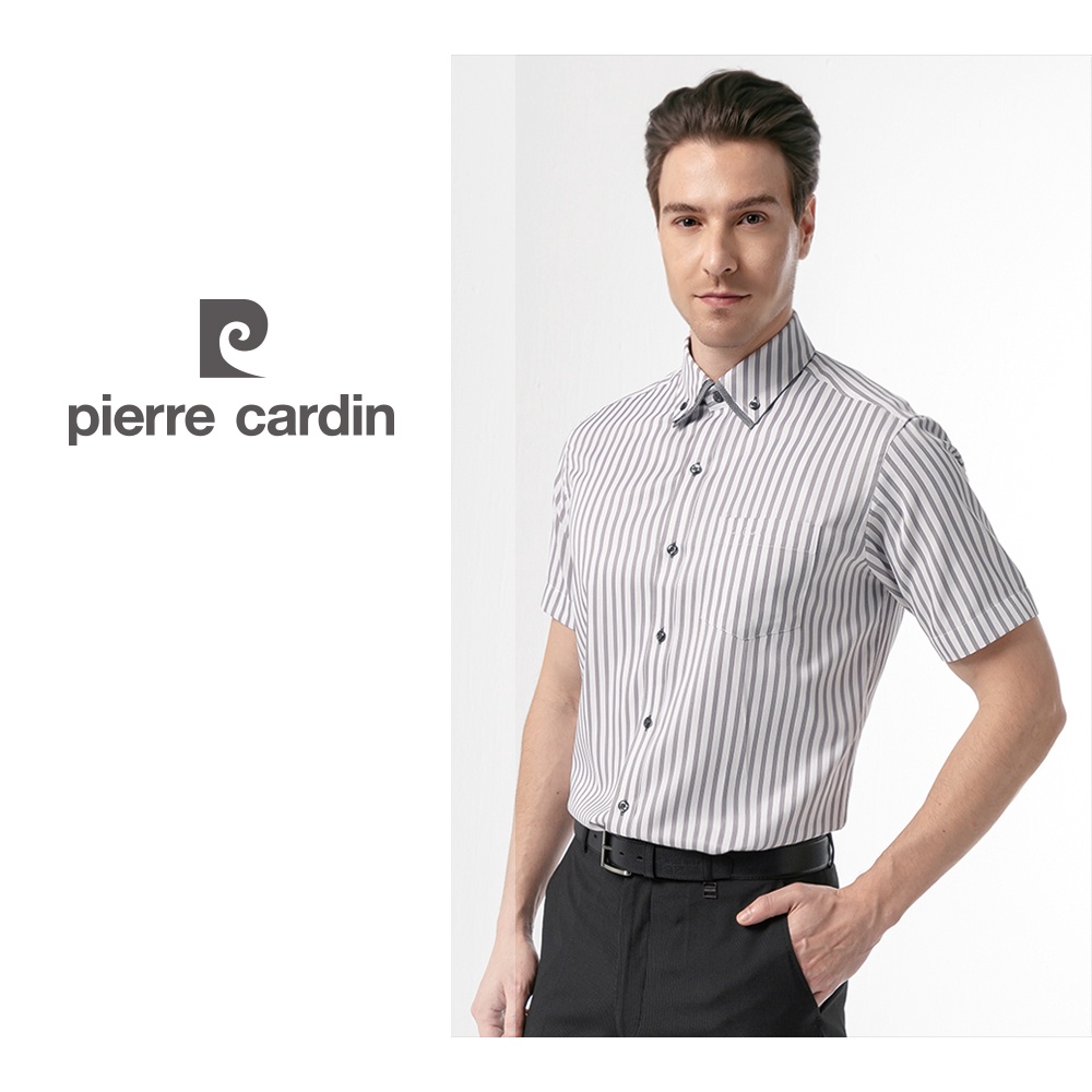 【pierre cardin 皮爾卡登】男襯衫 棉混紡抗皺合身版時尚扣領休閒條紋短袖襯衫_白底灰條(82206-90)白底灰條,39|白底灰條,40|白底灰條,37|白底灰條,38Shirtspierre cardin 皮爾卡登|襯衫官方旗艦館