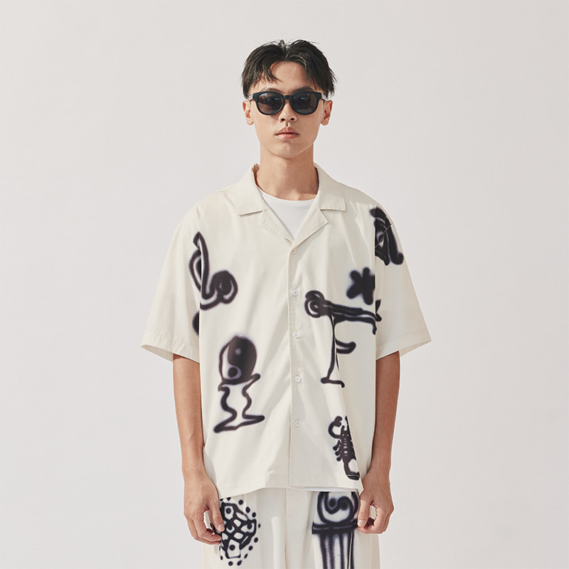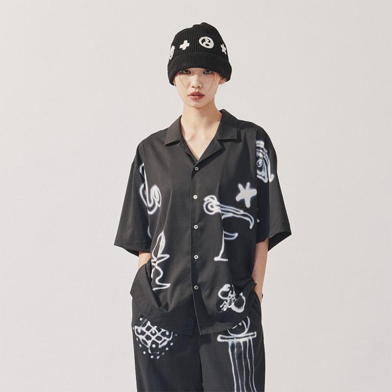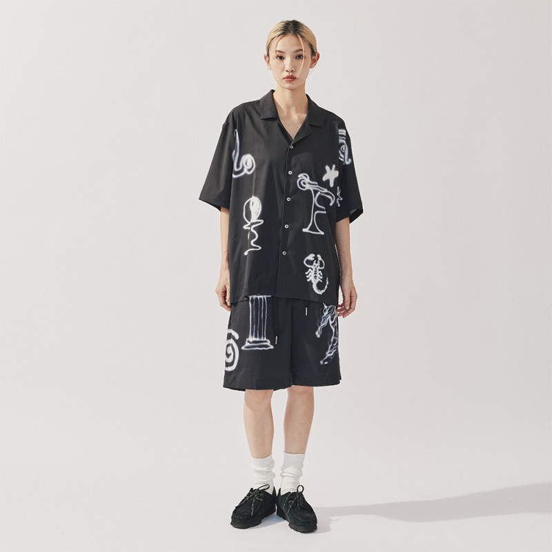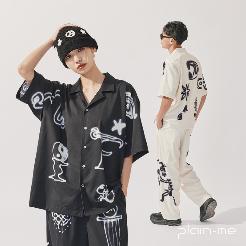 plain-me 太陽龍宮聯名印花襯衫 CRV3323-232 <男女款 襯衫 短袖上衣 套裝>墨黑,SShirtsplain-me 官方旗艦店