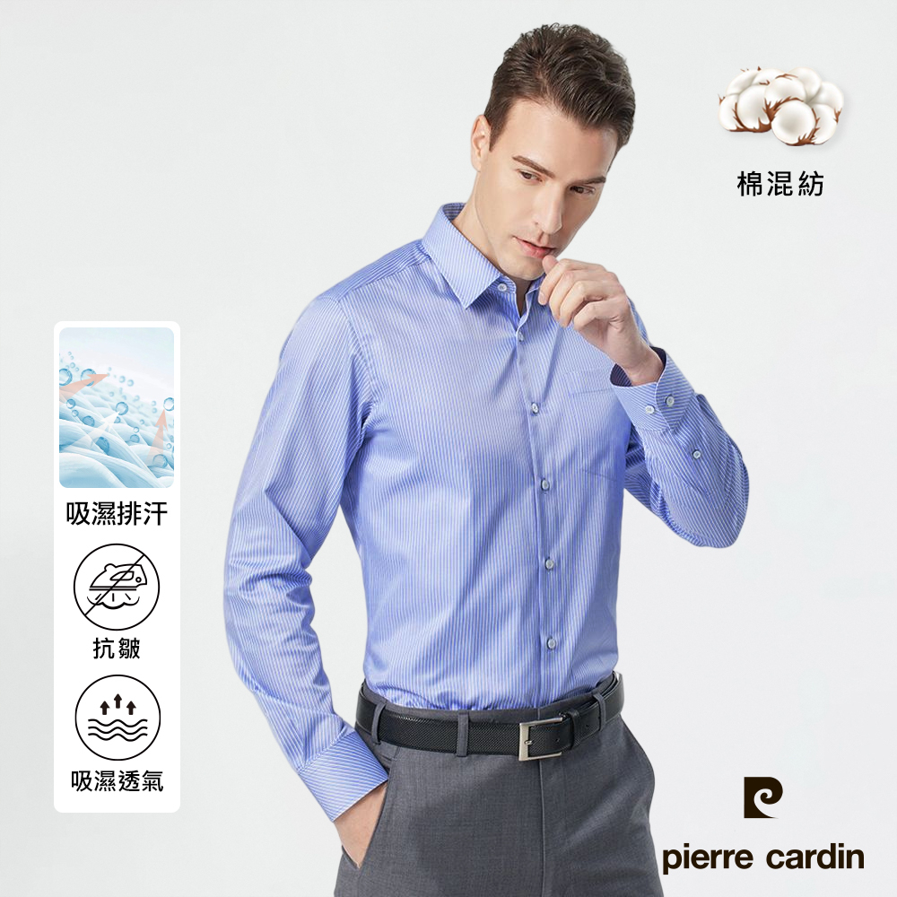 【pierre cardin 皮爾卡登】男襯衫 合身版吸濕排汗棉混紡舒適百搭條紋長袖襯衫_藍底白線條(62862-33)藍底白線條,42|藍底白線條,37|藍底白線條,38|藍底白線條,39|藍底白線條,40|藍底白線條,41Shirtspierre cardin 皮爾卡登|襯衫官方旗艦館
