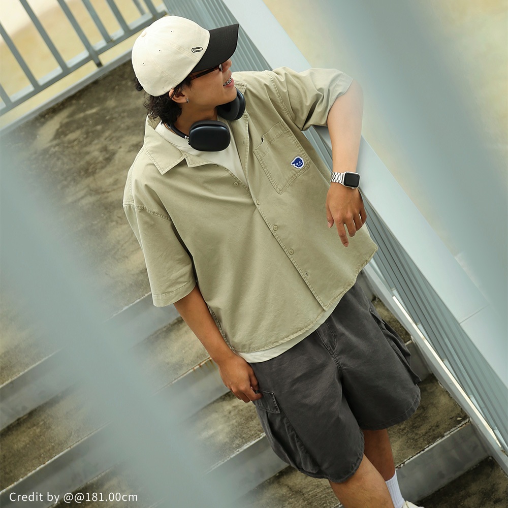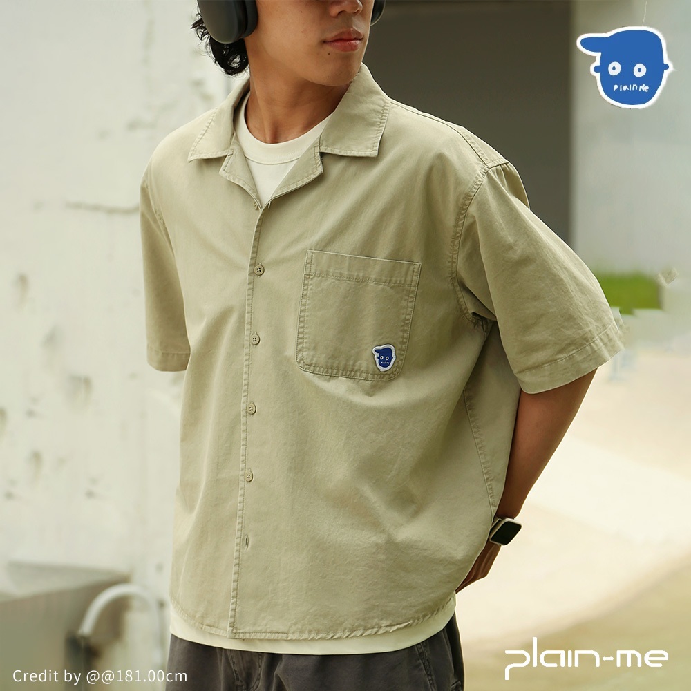 plain-me [小P社長] 水洗 短袖 短版 男襯衫 女襯衫 [PLN3367-252]卡其,S|卡其,M|卡其,L|深灰,S|深灰,M|深灰,LShirtsplain-me 官方旗艦店
