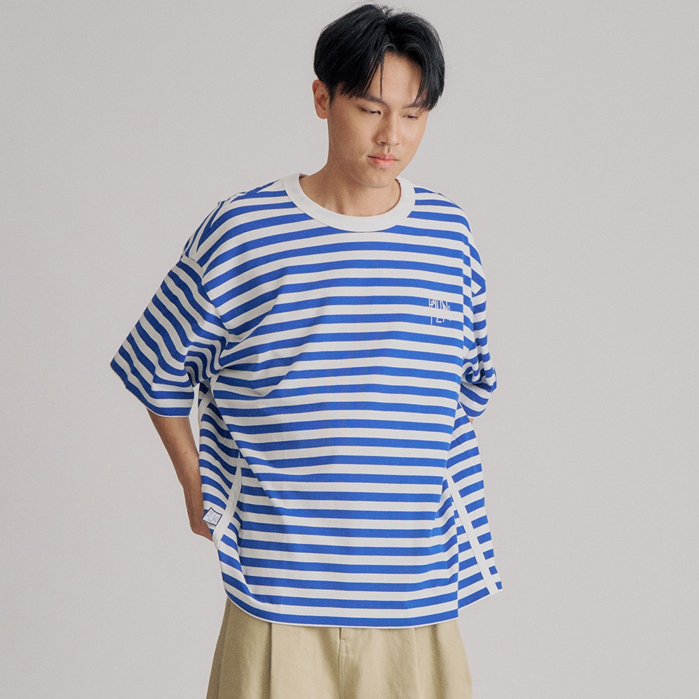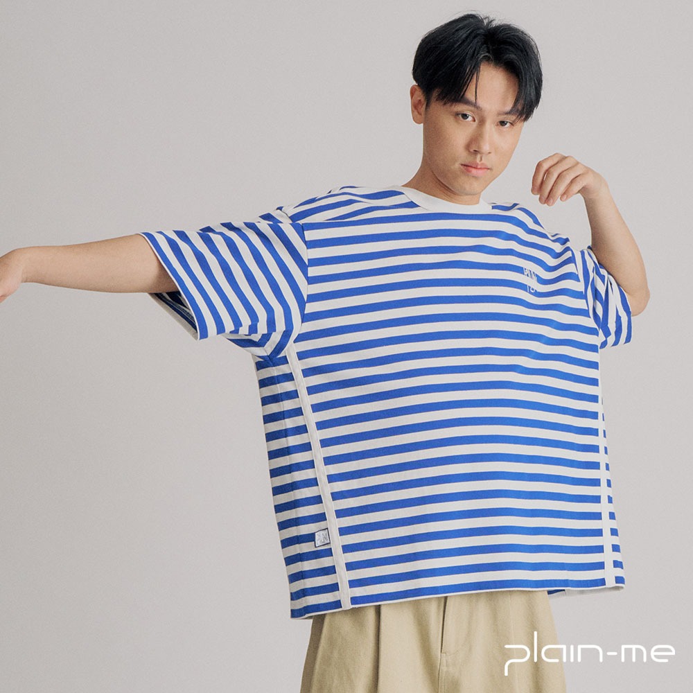 plain-me [clip by clip] 條紋TEE 短袖 TEE 上衣 t恤 [PLN0076-251]淺灰,S|淺灰,M|寶藍,S|寶藍,MT-Shirtsplain-me 官方旗艦店
