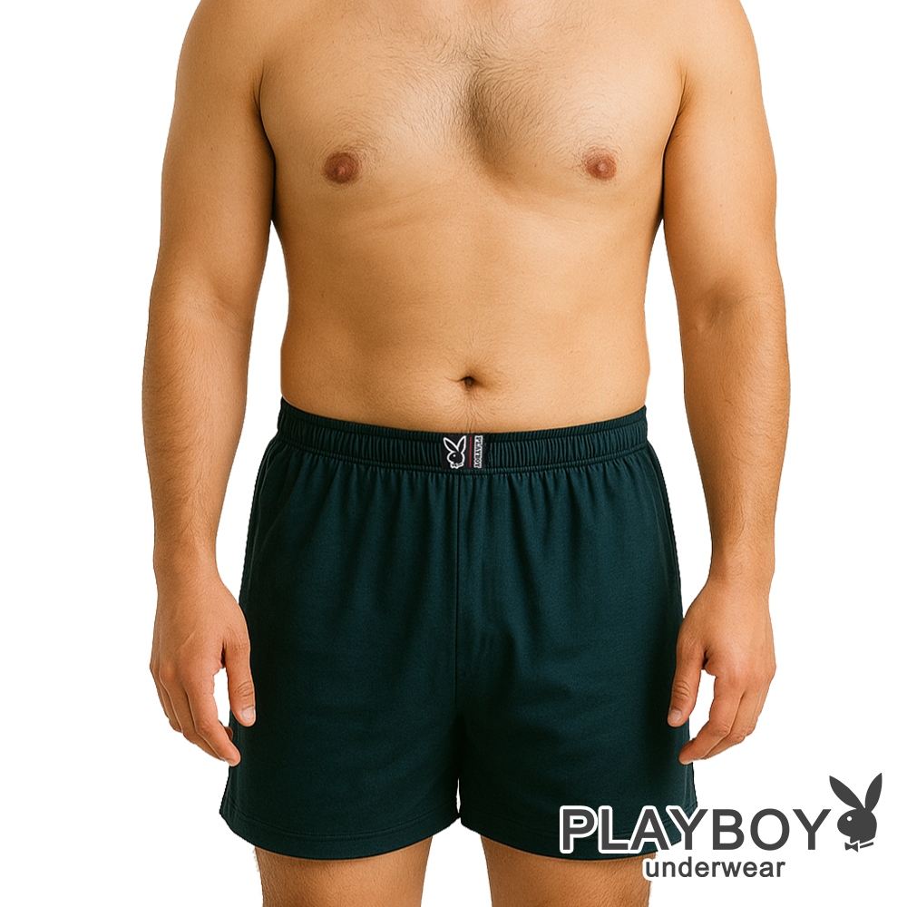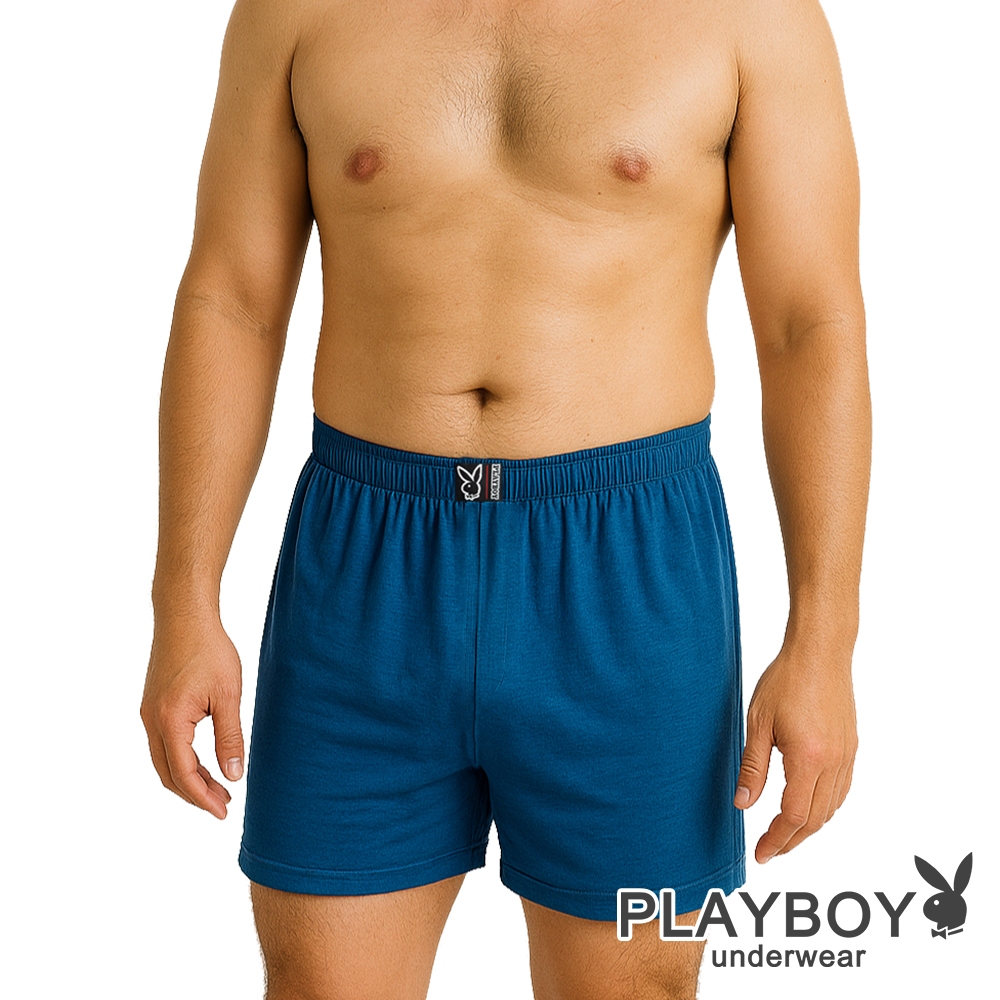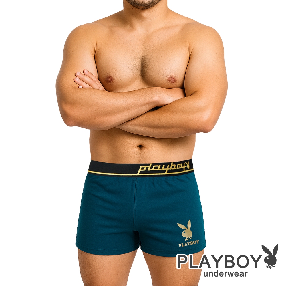 PLAYBOY|經典燙金LOGO平口內褲 四角內褲|土耳其藍色XXL|M|L|XLUnderwearPLAYBOY_英殷國際