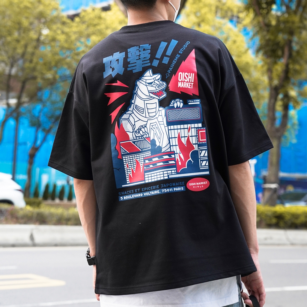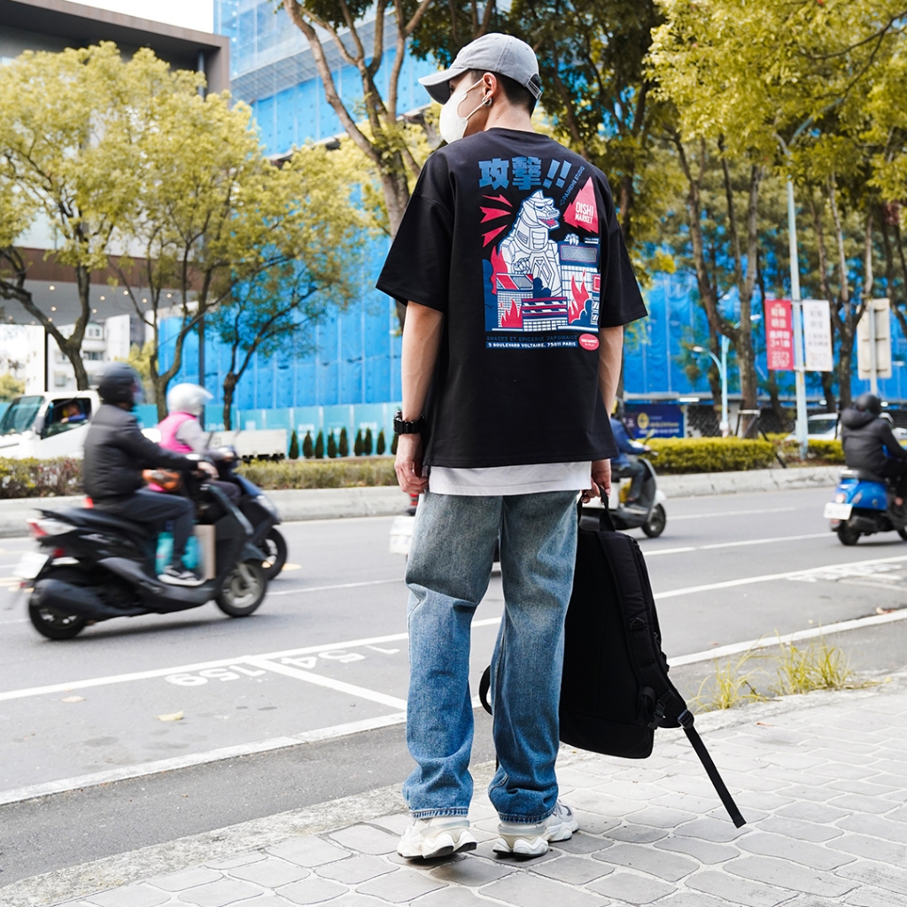 QIAO 攻擊!! 機甲大怪獸 開戰 高磅數 細絨棉 落肩 寬鬆版型 短袖 短T 日系 穿搭 男生短袖 衣服 上衣 T恤