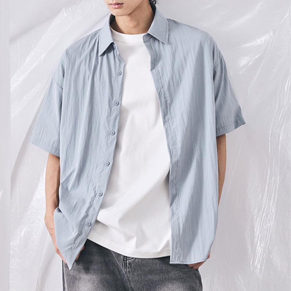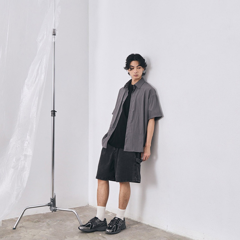 QUEENSHOP_ S 男裝 基本素面刷刷短袖襯衫 三色售S/M/L/XL 現+預 【01025554】藍S|藍M|藍L|藍XL|杏S|杏M|杏L|杏XL|深灰S|深灰M|深灰L|深灰XLShirtsQUEENSHOP