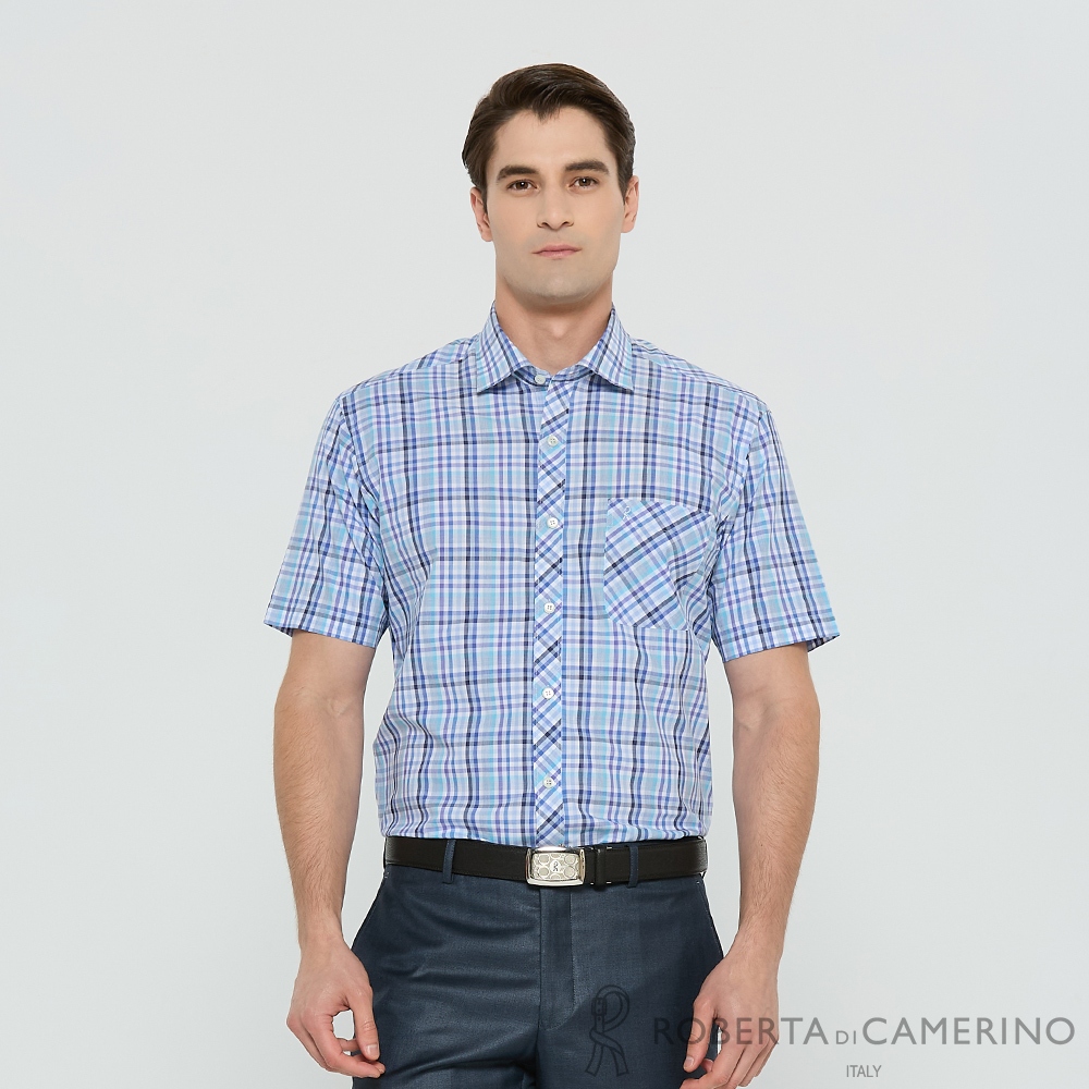ROBERTA諾貝達 男裝 日本素材 修身格紋純棉短袖襯衫 台灣製 REF22-3340|41|38|39ShirtsRoberta諾貝達官方旗艦店