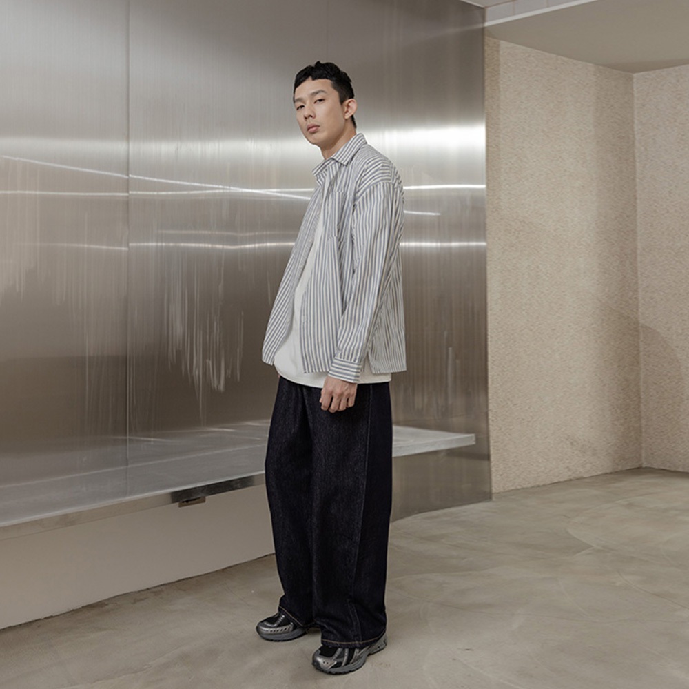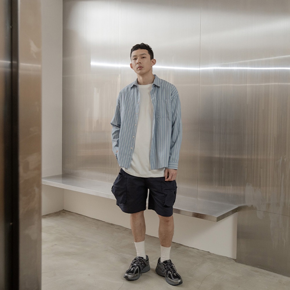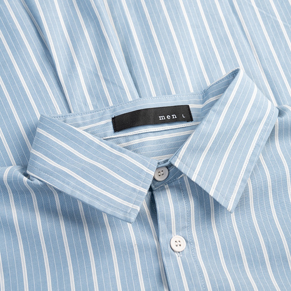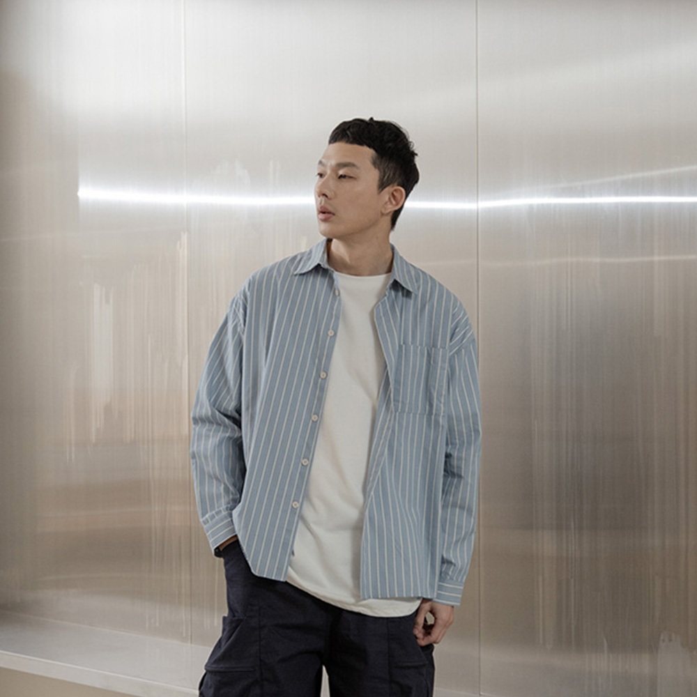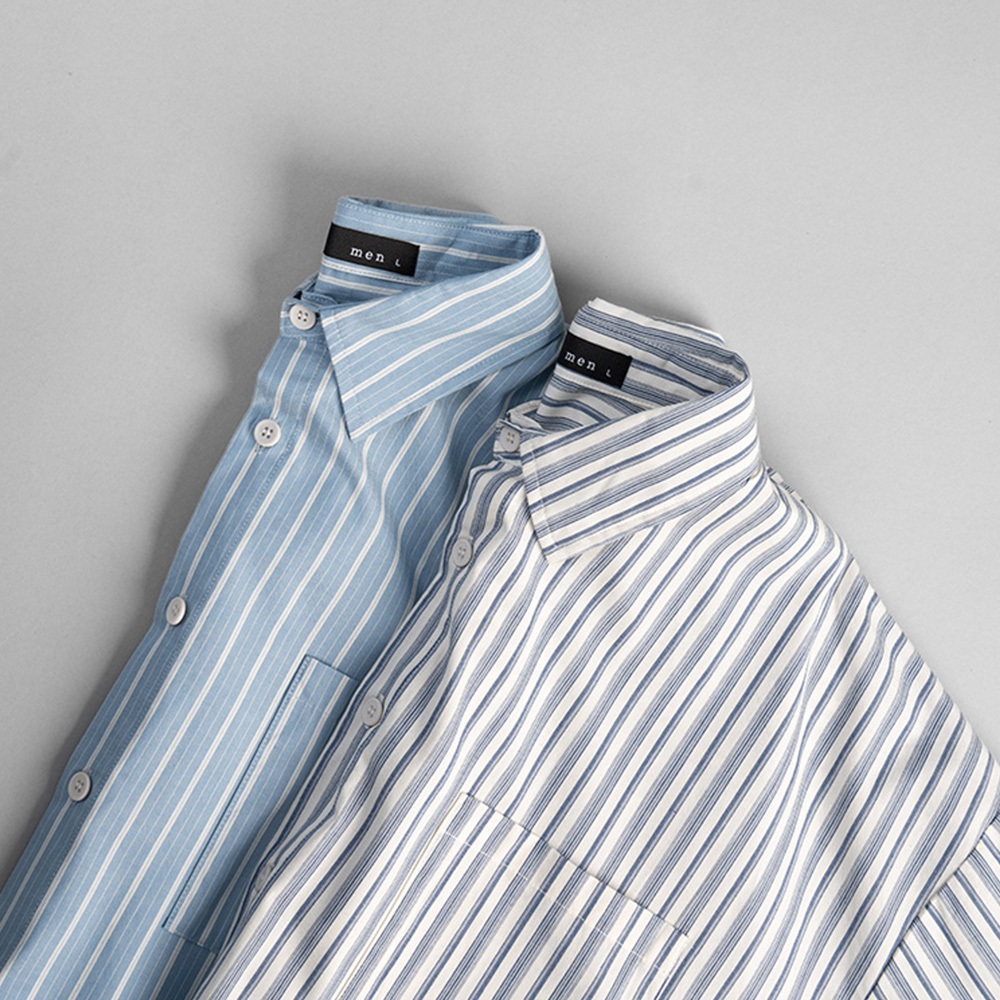 QUEENSHOP_ S 長袖 男裝 直條紋側開衩寬版襯衫 兩色售 M/L/XL 現+預 【01025594】杏M|杏L|杏XL|淺藍M|淺藍L|淺藍XLShirtsQUEENSHOP