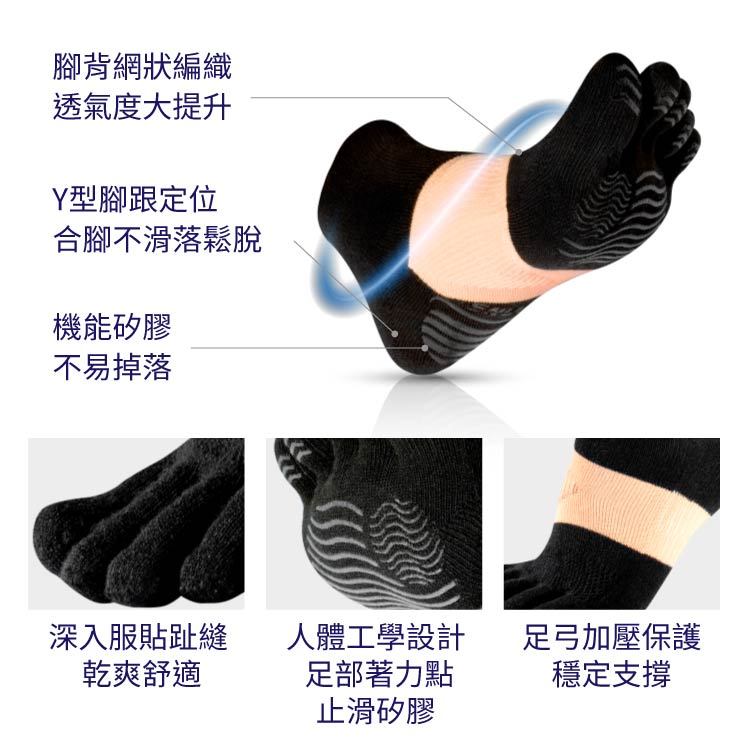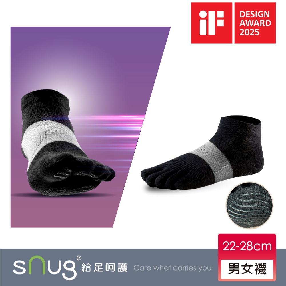 sNug【極速五趾運動船襪黑灰色1雙】德國iF設計獎 透氣 吸汗 除臭襪 止滑襪 加壓 壓力襪 激烈運動 馬拉松 台灣製黑灰,22-24|黑灰,25-27sNug給足呵護-科技健康襪/台灣製/官方直營