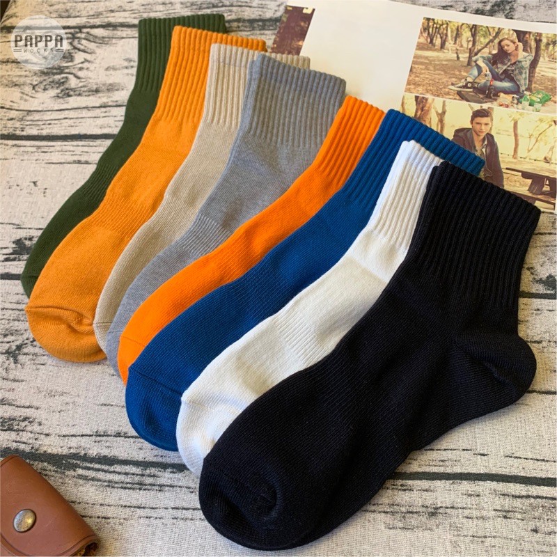 PAPPA WOCKS 經典素色中筒襪 買5送2 男女 台灣製 精梳純棉 素色襪子 中筒襪女 中筒襪男 短襪 襪子
