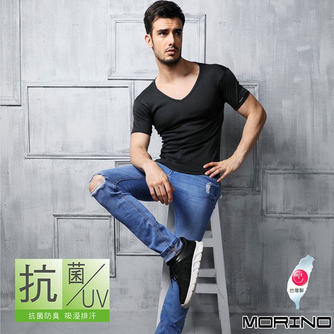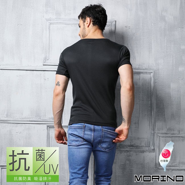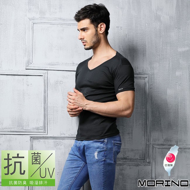 【MORINO】抗菌防臭速乾短袖V領衫/T恤 _黑色 MO5207 男短衫 男內衣 快速吸濕排汗 涼感 透氣排汗 抗UVM 黑色|L 黑色T-ShirtsMORINO摩力諾 時尚機能旗艦館 男女童內著