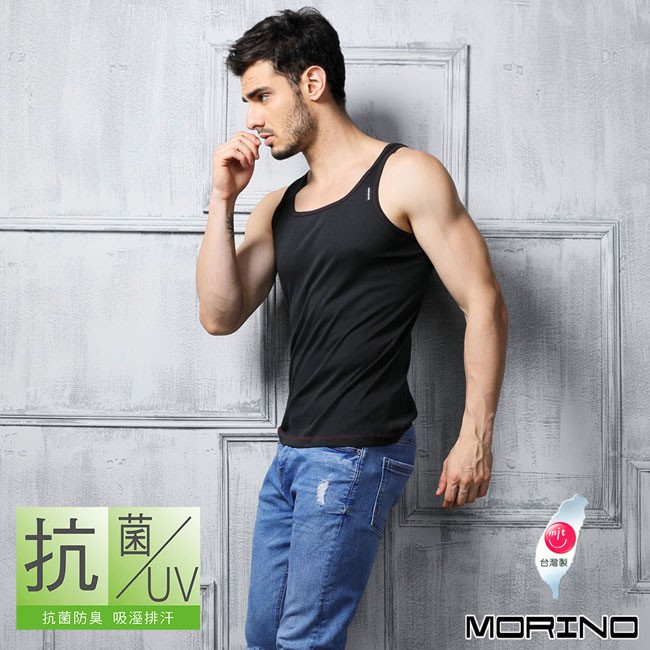 【MORINO】抗菌防臭速乾背心_黑色 MO5107 男背心 男內衣 快速吸濕排汗 抗菌防臭、透氣排汗M 黑色|L 黑色|XL 黑色(停產)TanksMORINO摩力諾 時尚機能旗艦館 男女童內著