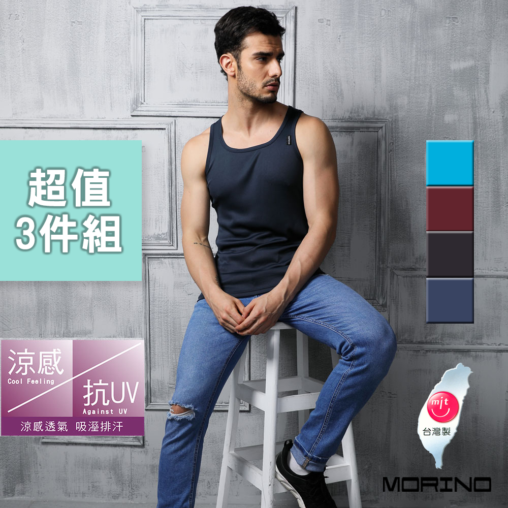 【MORINO】(3件組)吸汗速乾涼感背心 MO5103 MO5116 男背心 男內衣 涼感、透氣排汗、抗UVM 混搭【丈青、水藍】|L 混搭【丈青、水藍】|XL 水藍TanksMORINO摩力諾 時尚機能旗艦館 男女童內著