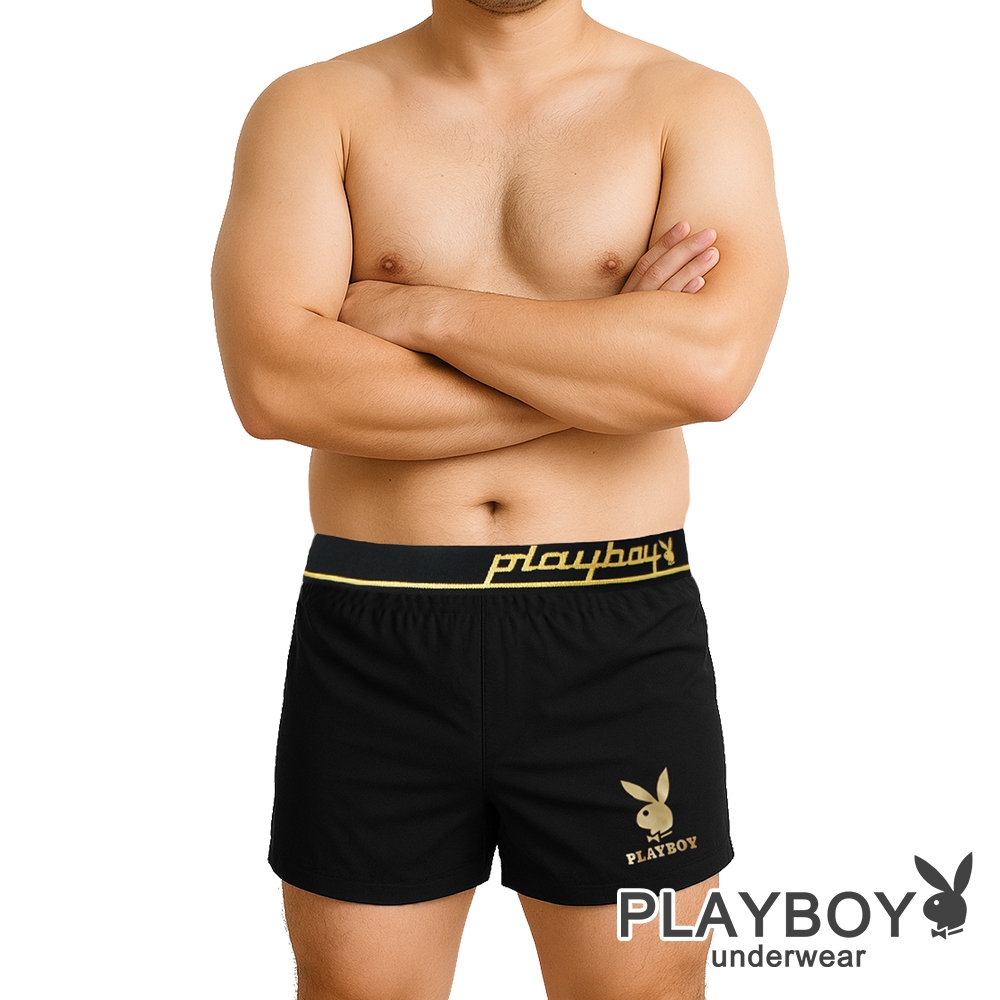 PLAYBOY|經典燙金LOGO平口內褲 四角內褲|黑色M|L|XL|XXLUnderwearPLAYBOY_英殷國際