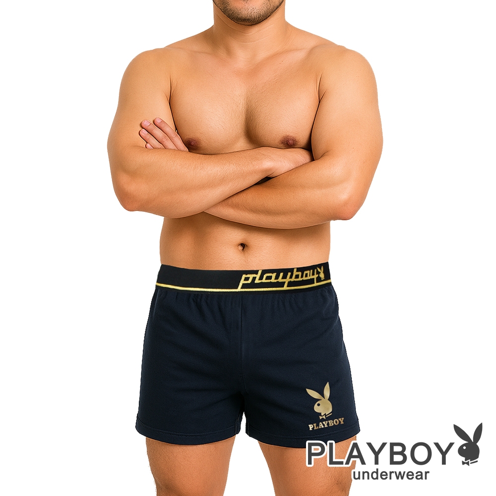 PLAYBOY|經典燙金LOGO平口內褲 四角內褲|藏青色藏青-M|藏青-L|藏青-XL|藏青-XXLUnderwearPLAYBOY_英殷國際