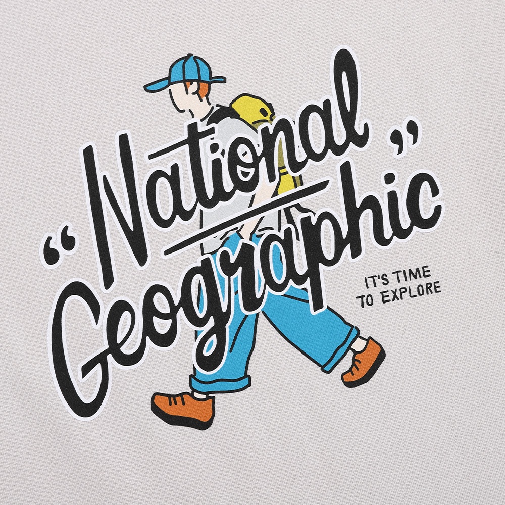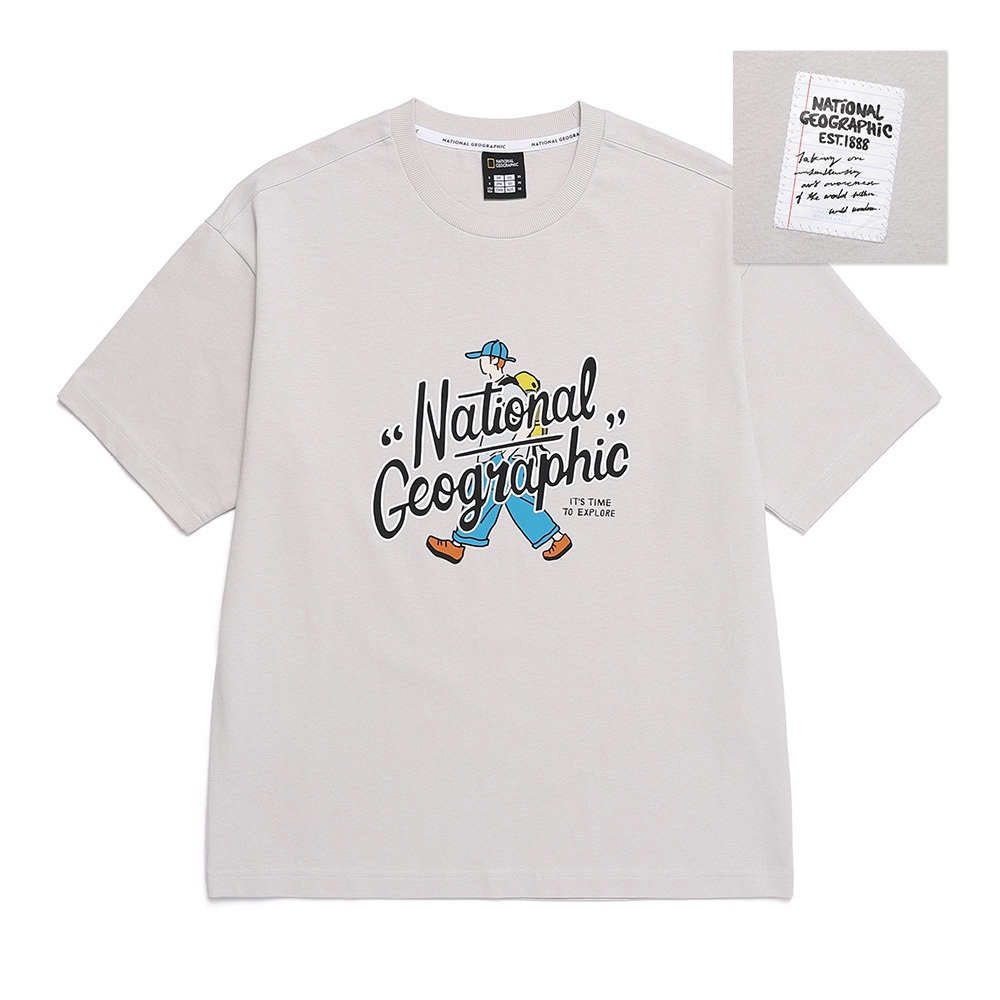 【國家地理服飾】男女同款 NATIONAL TREASURE 微寬鬆印花T恤 WALKER – 淺灰色