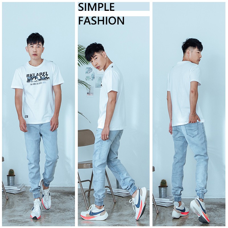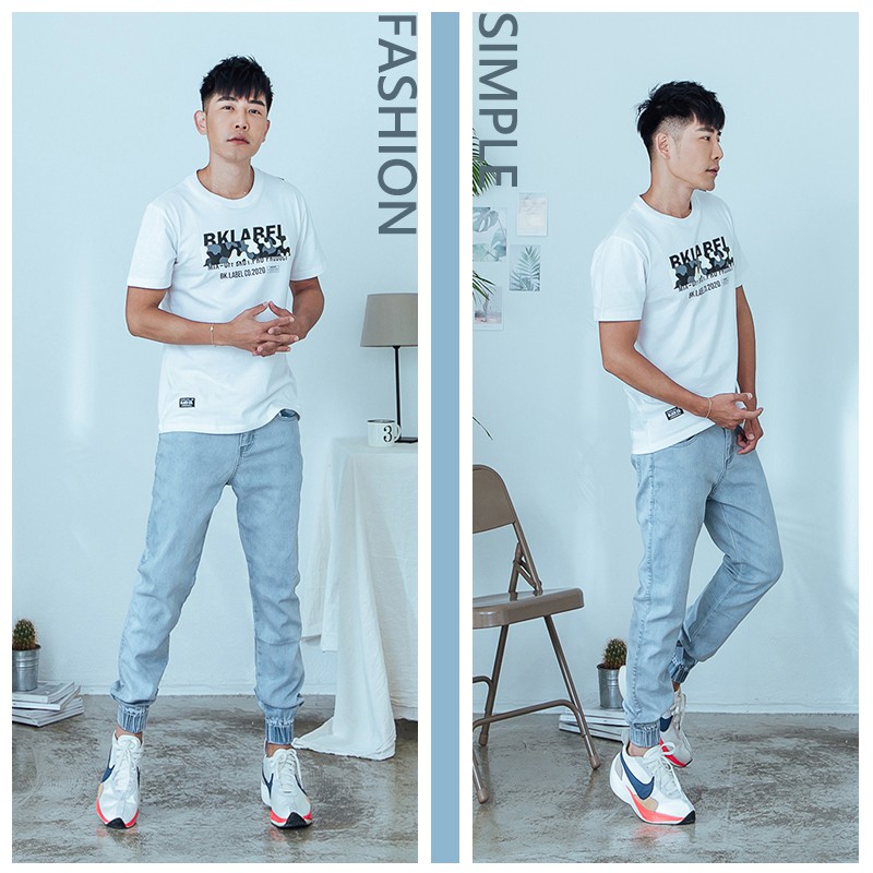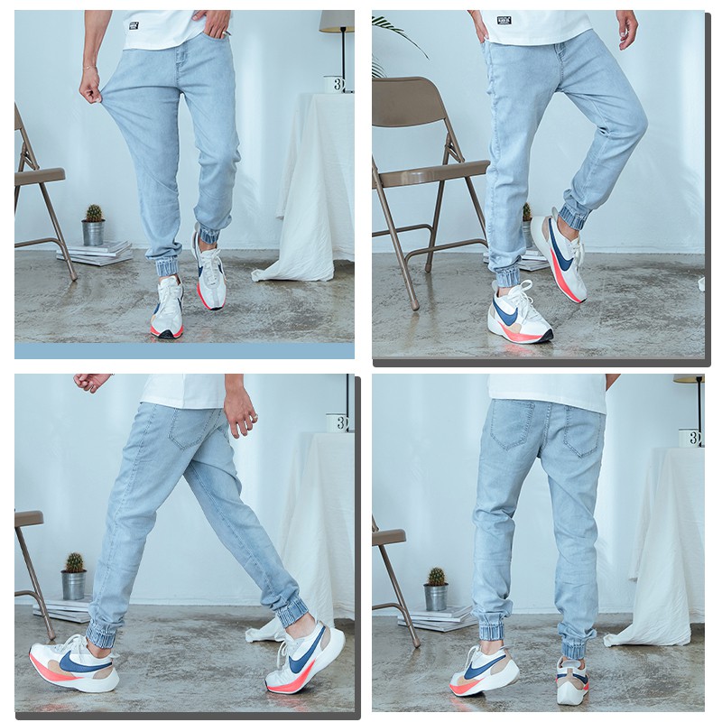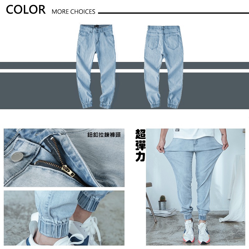 【OBIYUAN】牛仔褲 現貨 縮口褲 淺洗色 大彈力 修身 長褲 單寧褲 【HK4188】淺藍36|淺藍28|淺藍30|淺藍32|淺藍34OBIYUAN
