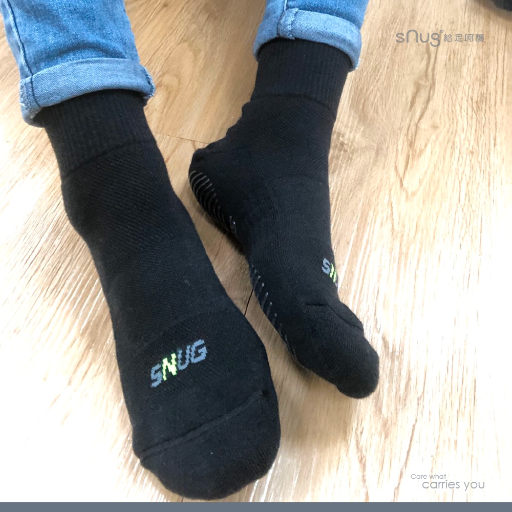 sNug【厚底】【動能氣墊運動襪止滑款1雙】止滑襪 透氣 吸汗 乾爽 久站 除臭襪 運動襪 練腿神器 健身房必備 台灣製黑色,22-24|黑色,25-27sNug給足呵護-科技健康襪/台灣製/官方直營