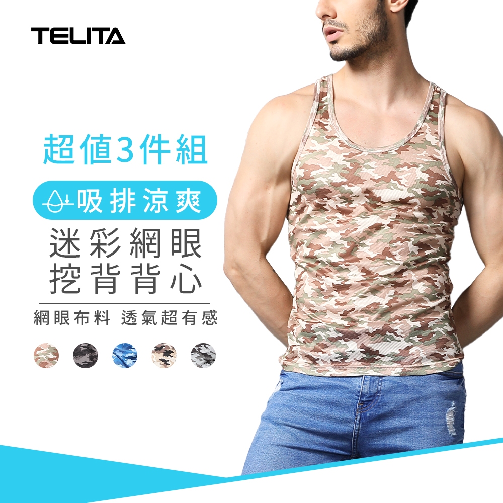 【TELITA】(3件組)吸溼涼爽迷彩網眼挖背背心 TA517 男背心 台灣製造 網眼款式 吸濕排汗 透氣舒適M 混搭【欲挑色請聊聊詢問】|L 混搭【欲挑色請聊聊詢問】|XL 混搭【欲挑色請聊聊詢問】TanksMORINO摩力諾 時尚機能旗艦館 男女童內著