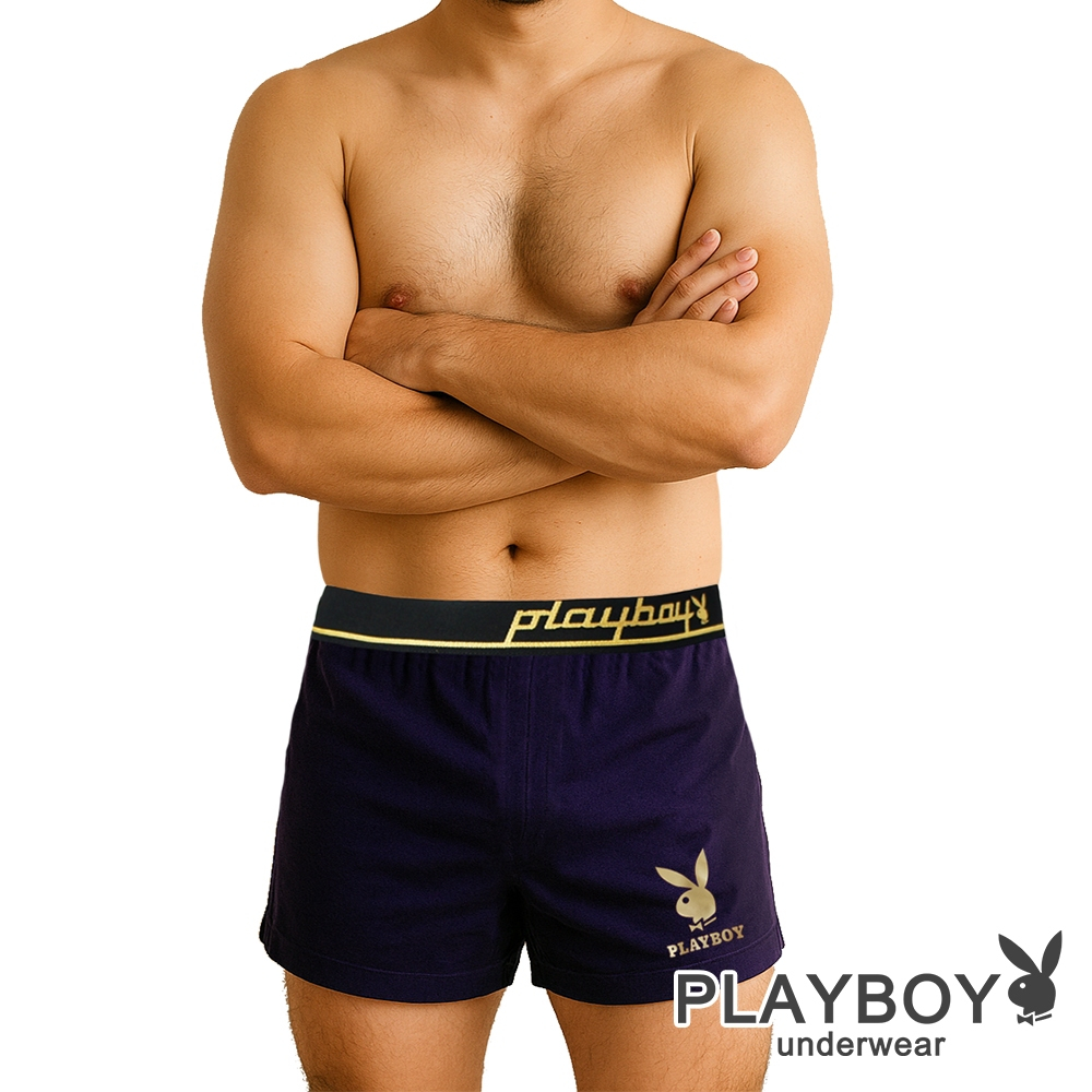 PLAYBOY|經典燙金LOGO平口內褲 四角內褲|紫色M|L|XL|XXLUnderwearPLAYBOY_英殷國際