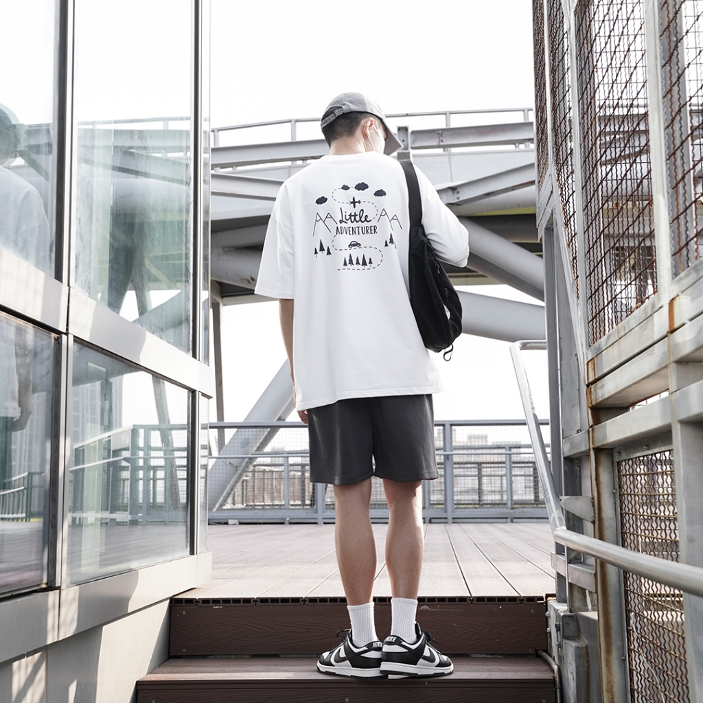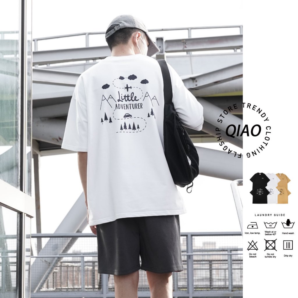 QIAO 韓國新貨 手繪山脈 車車 純印刷單品 升級細絨棉 落肩 五分袖 寬鬆 T恤 短袖 短T 情侶 帥T 高磅 露營黑色,L|白色,M|白色,L|可可色,M|可可色,L|黑色,MT-ShirtsQIAO 潮人服飾旗艦店
