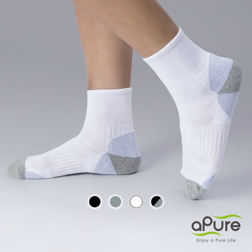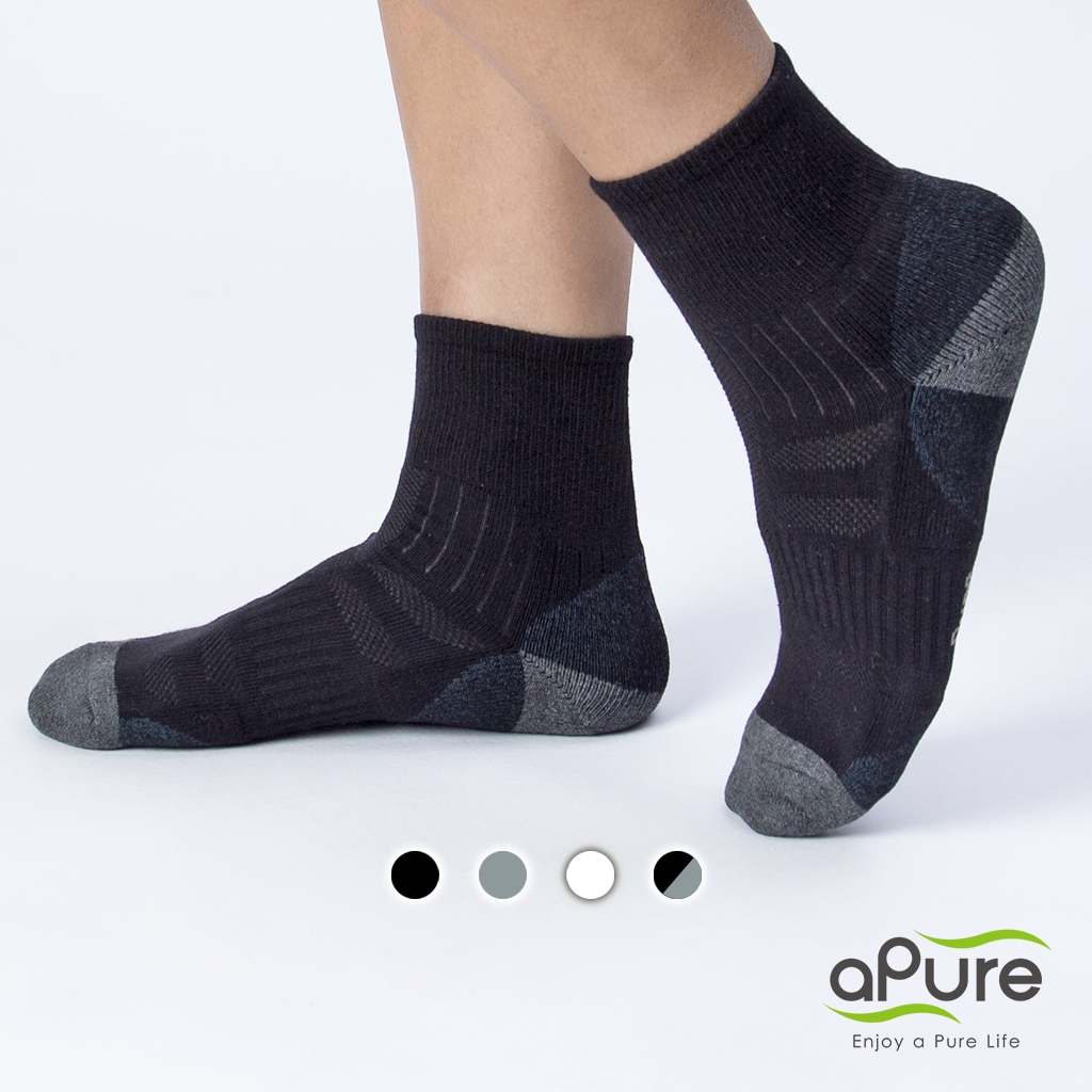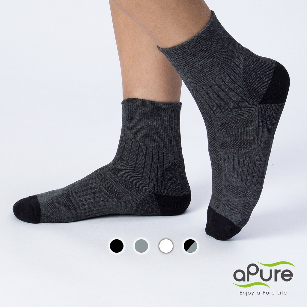 【aPure】除臭襪-弧型運動襪-中筒深灰,L 26-28cm|白,L 26-28cm|淺灰,L 26-28cm|黑,L 26-28cmPureSocks 機能性纖維領導品牌– enjoy a Pure life
