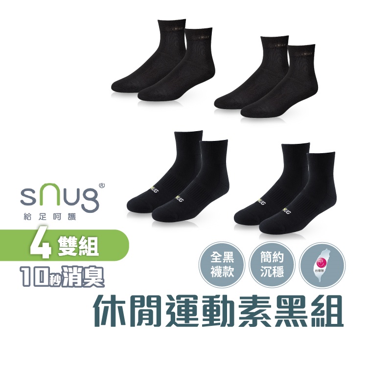 sNug【休閒運動素黑4雙組】吸汗 透氣 不悶熱 除臭襪 無痕襪口 日常穿搭 學生 上班族 10秒除臭 永久有效 台灣製休閒短襪黑*2+運動襪黑*2,25-27|休閒短襪黑*2+運動襪黑*2,28-30|休閒短襪黑*2+運動襪黑*2,20-22|休閒短襪黑*2+運動襪黑*2,22-24sNug給足呵護-科技健康襪/台灣製/官方直營