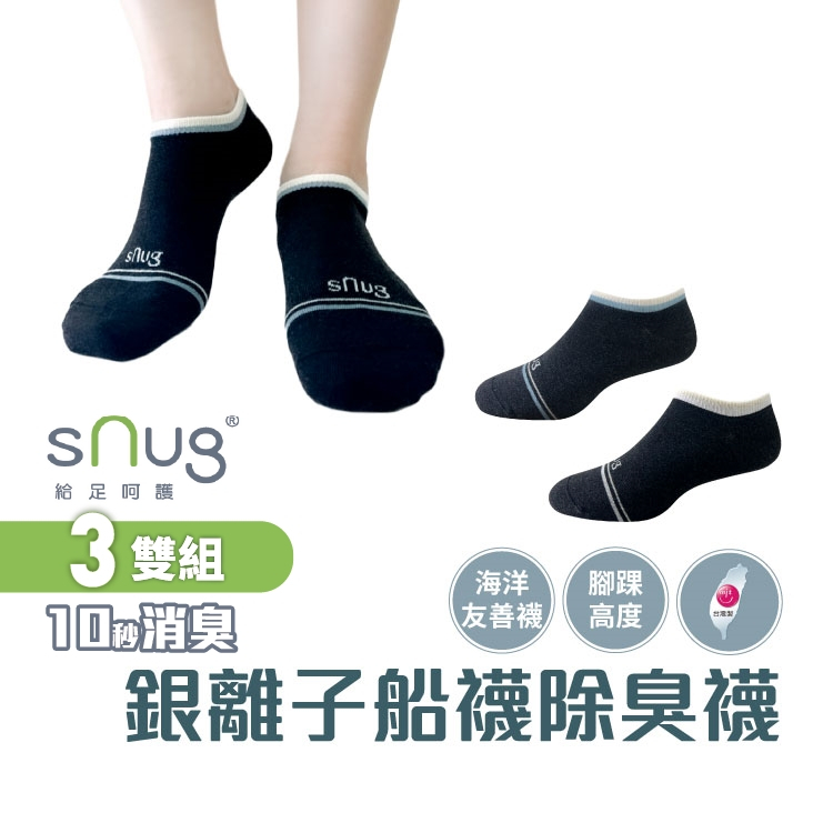 sNug【海洋友善銀離子船襪3雙組】透氣 吸汗 低碳 抗菌 香港腳 細菌感染 踝襪 除臭襪 環保 10秒除臭 台灣製黑米,22-24|黑米,25-27|黑藍,22-24|黑藍,25-27sNug給足呵護-科技健康襪/台灣製/官方直營