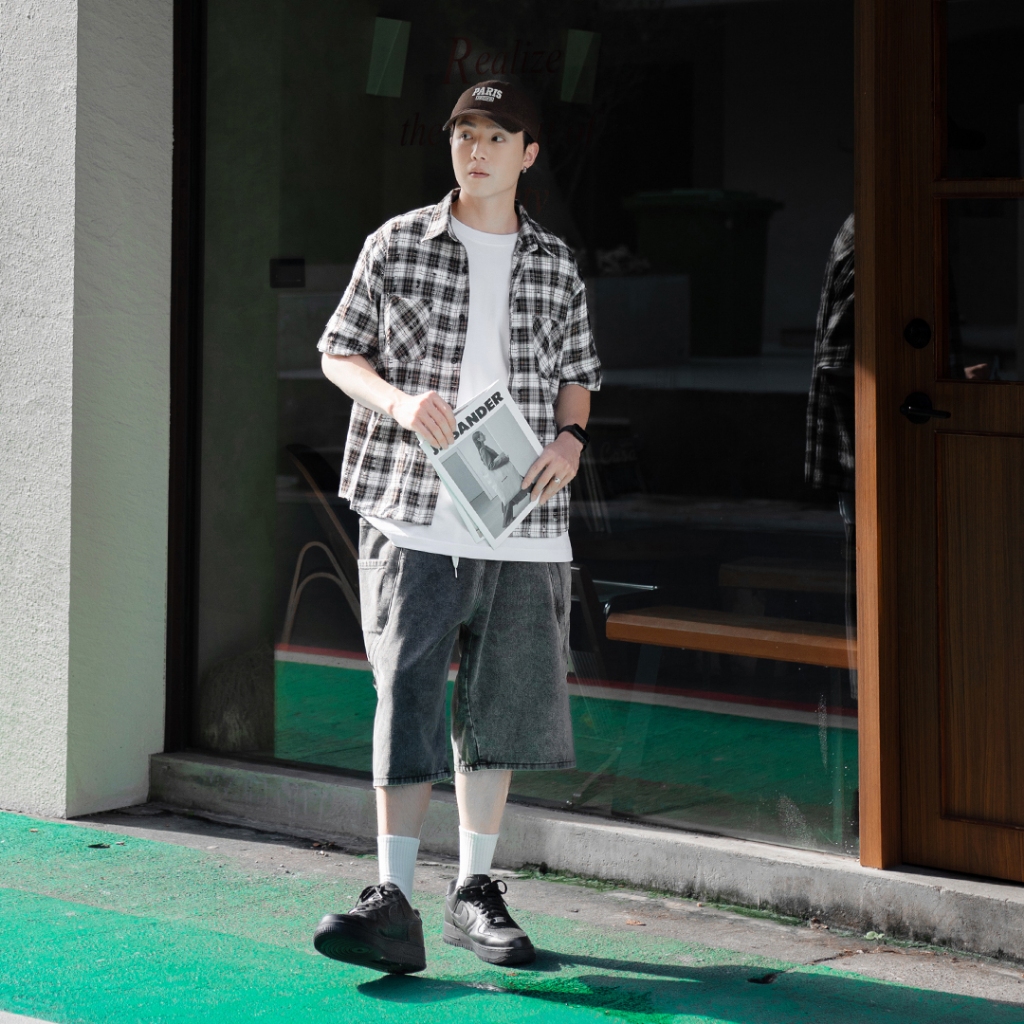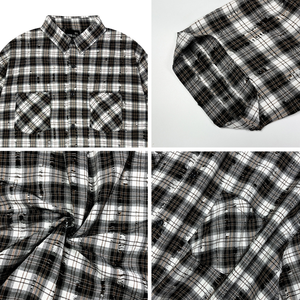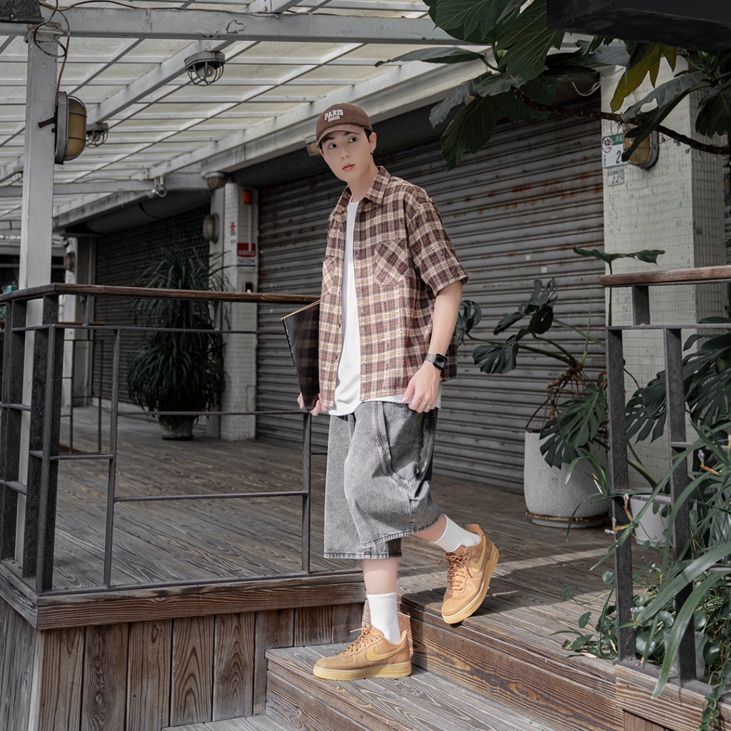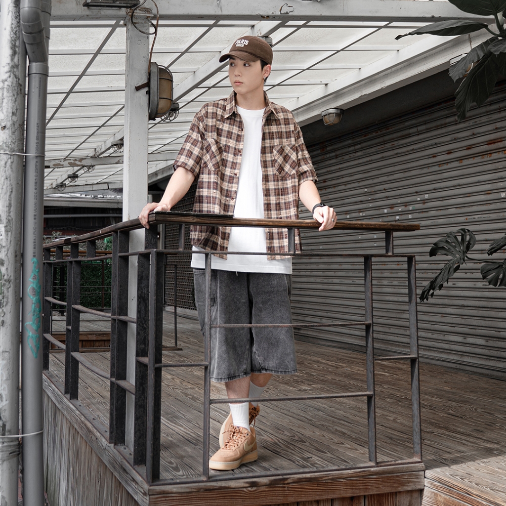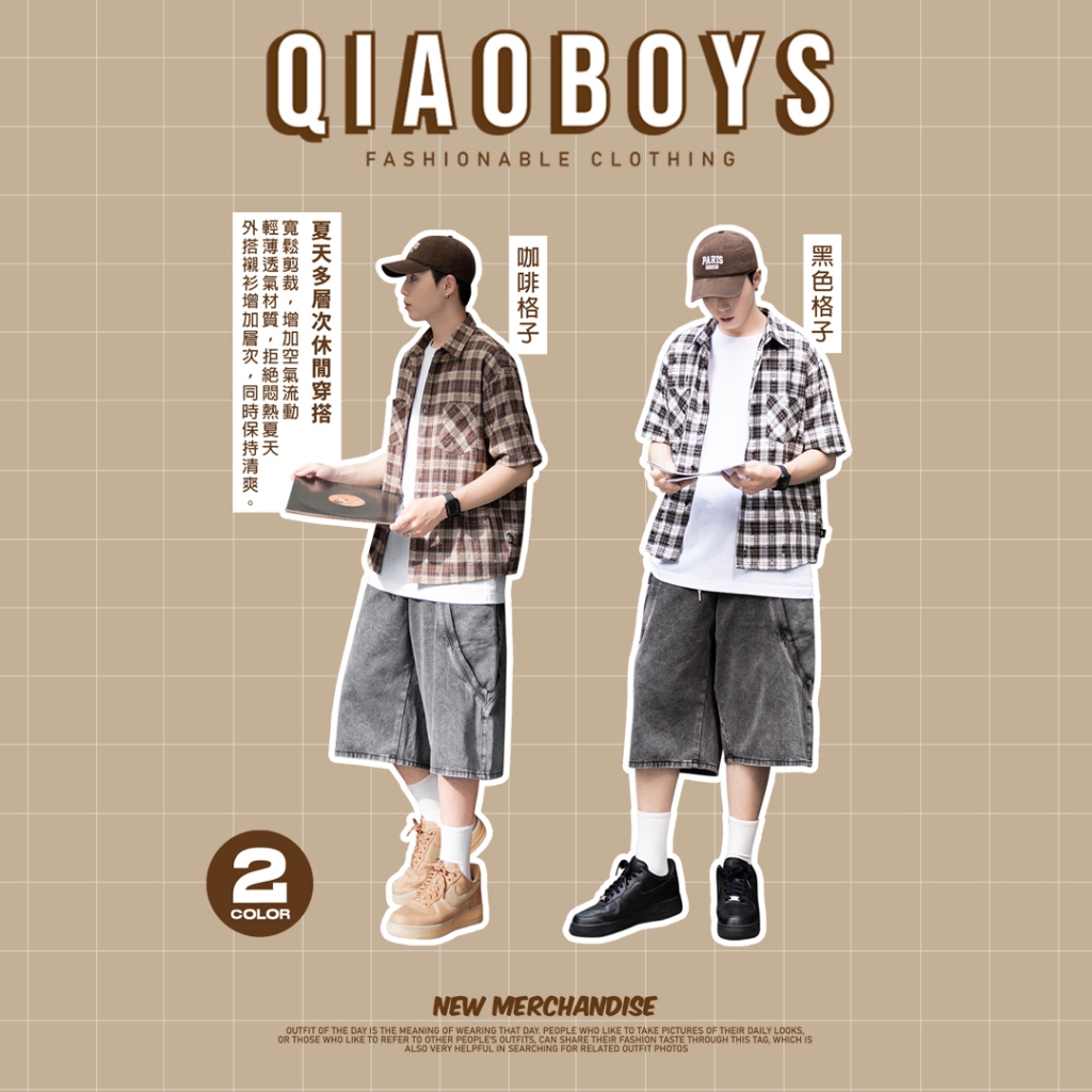 【QIAO】復古刷破 格紋襯衫 短袖襯衫 寬鬆襯衫 格子襯衫 襯衫 穿搭 男友風襯衫 夏季襯衫男 休閒襯衫 襯衫男黑色,M|黑色,L|黑色,XL|黑色,2XL|咖色,M|咖色,L|咖色,XL|咖色,2XLShirtsQIAO 潮人服飾旗艦店