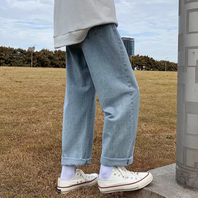 【ohi】牛仔褲 九分褲 牛仔寬褲 單寧褲 休閒褲 寬褲 闊腿寬鬆休閒長褲百搭男生女生直筒褲子(MM977)