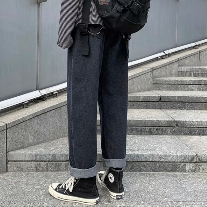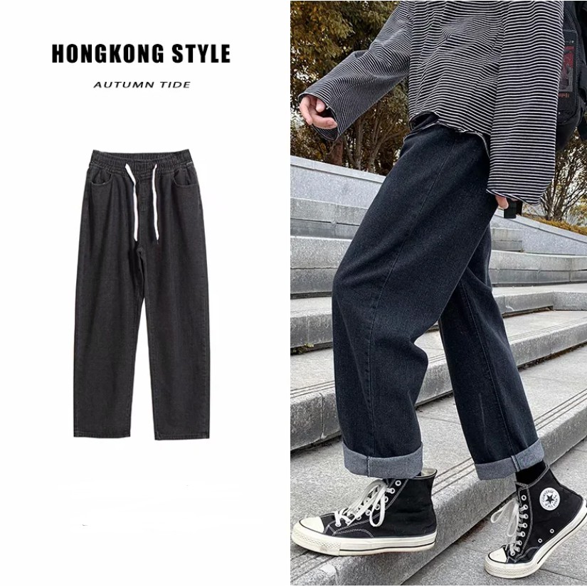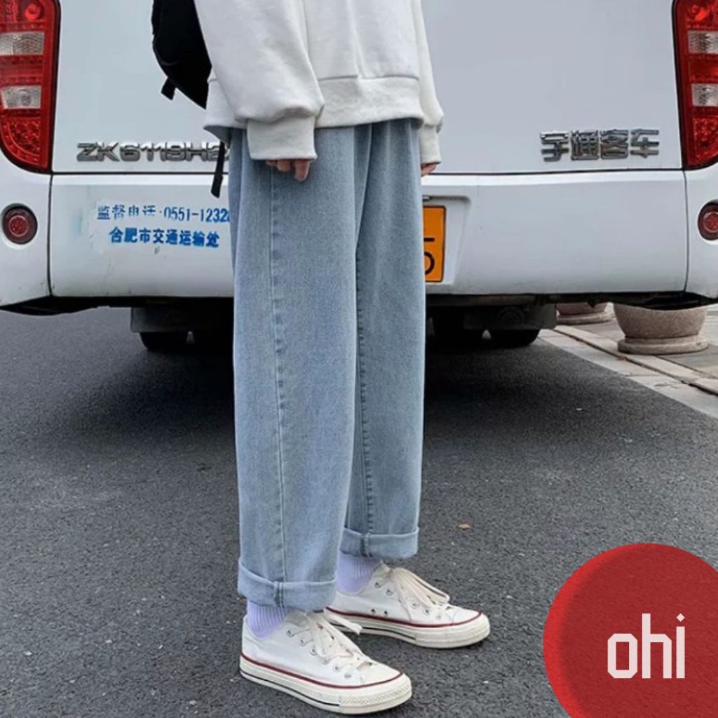 【ohi】牛仔褲 九分褲 牛仔寬褲 單寧褲 休閒褲 寬褲 闊腿寬鬆休閒長褲百搭男生女生直筒褲子(MM977)藍色,3XL|黑色,2XL|黑色,3XL|藍色,M|藍色,L|藍色,XL|藍色,2XL|黑色,M|黑色,L|黑色,XLOHI衣著