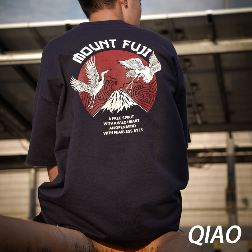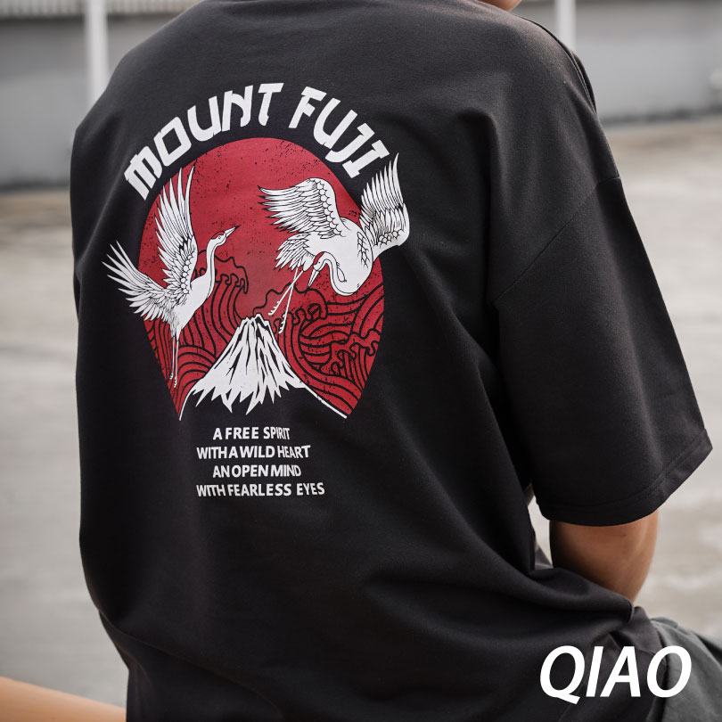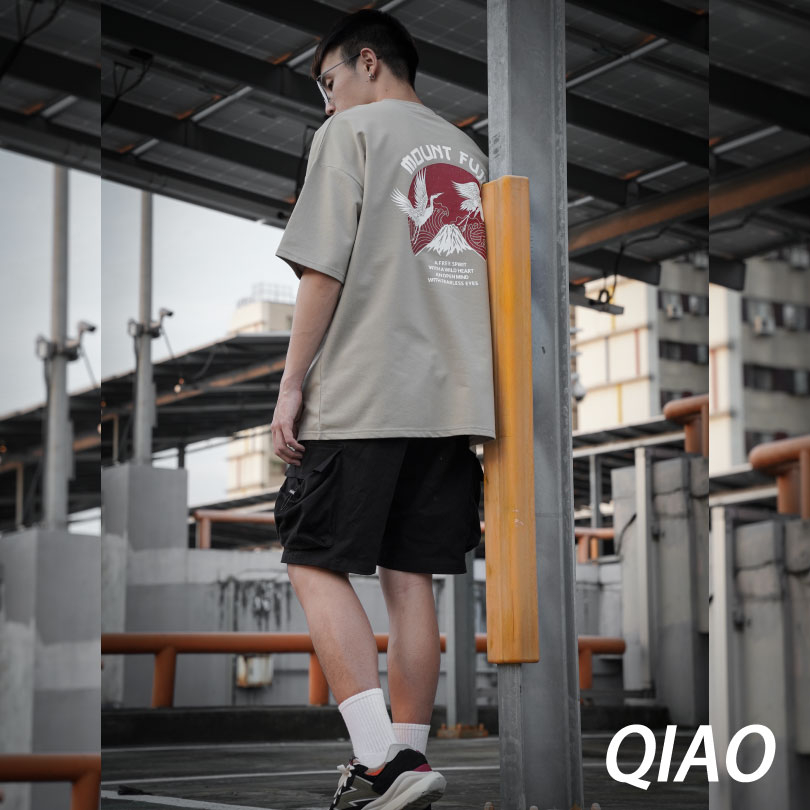 QIAO 日系FUJI富士岡 舞鶴 高磅 細絨棉 落肩 五分袖 寬鬆 T恤 短袖 短T 情侶 帥T 衣服和風大地色,M|和風大地色,L|靜岡純黑色,M|靜岡純黑色,L|浮世丈青色,M|浮世丈青色,LT-ShirtsQIAO 潮人服飾旗艦店